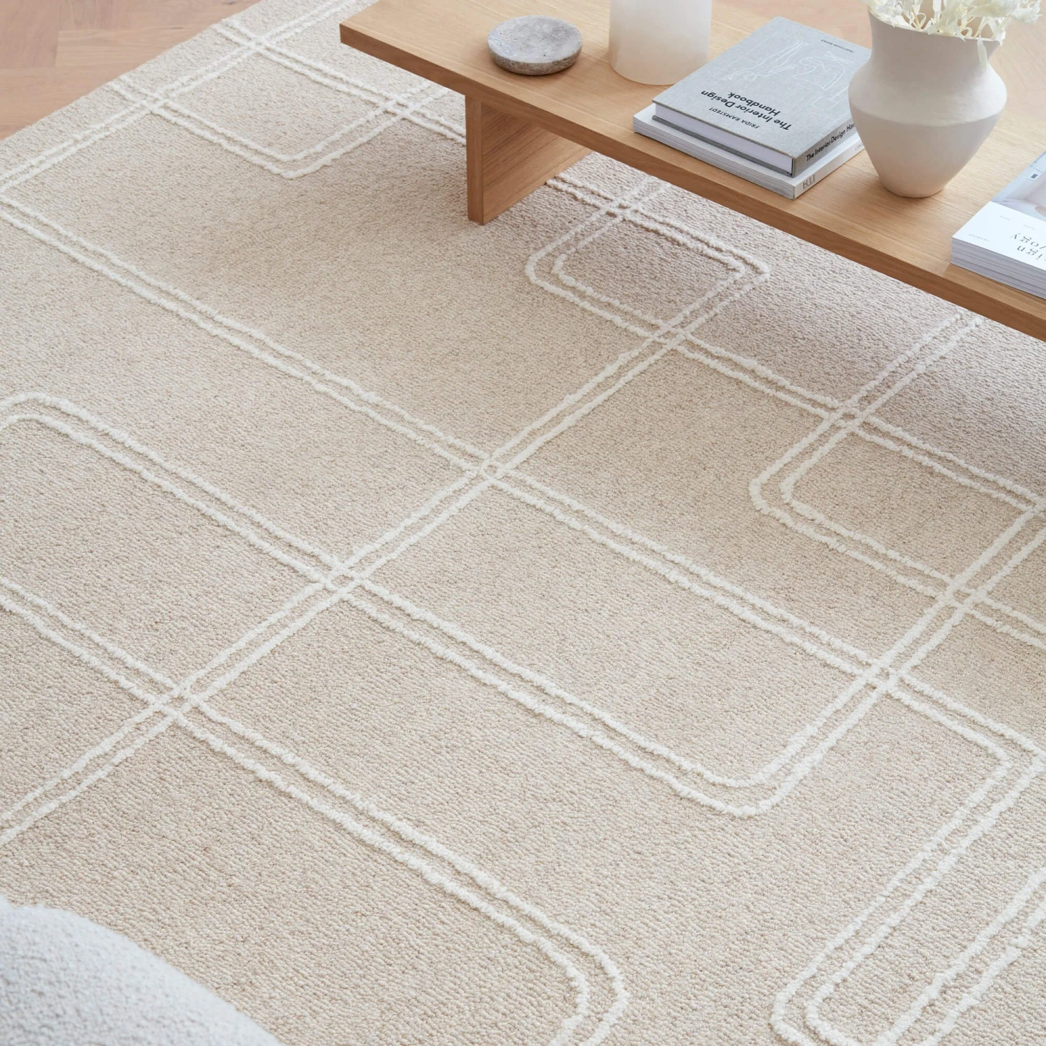 Refresh your living space with the clean lines and modern elegance of the 160cm x 230cm Ada Sand Rug. Expertly woven from 100% wool, this stylish rug features a subtle geometric line pattern in a soft, neutral sand tone, creating a sophisticated foundation for any room. The minimalist linear design provides a contemporary flair without overwhelming the space, making it ideal for both modern and retro interiors.