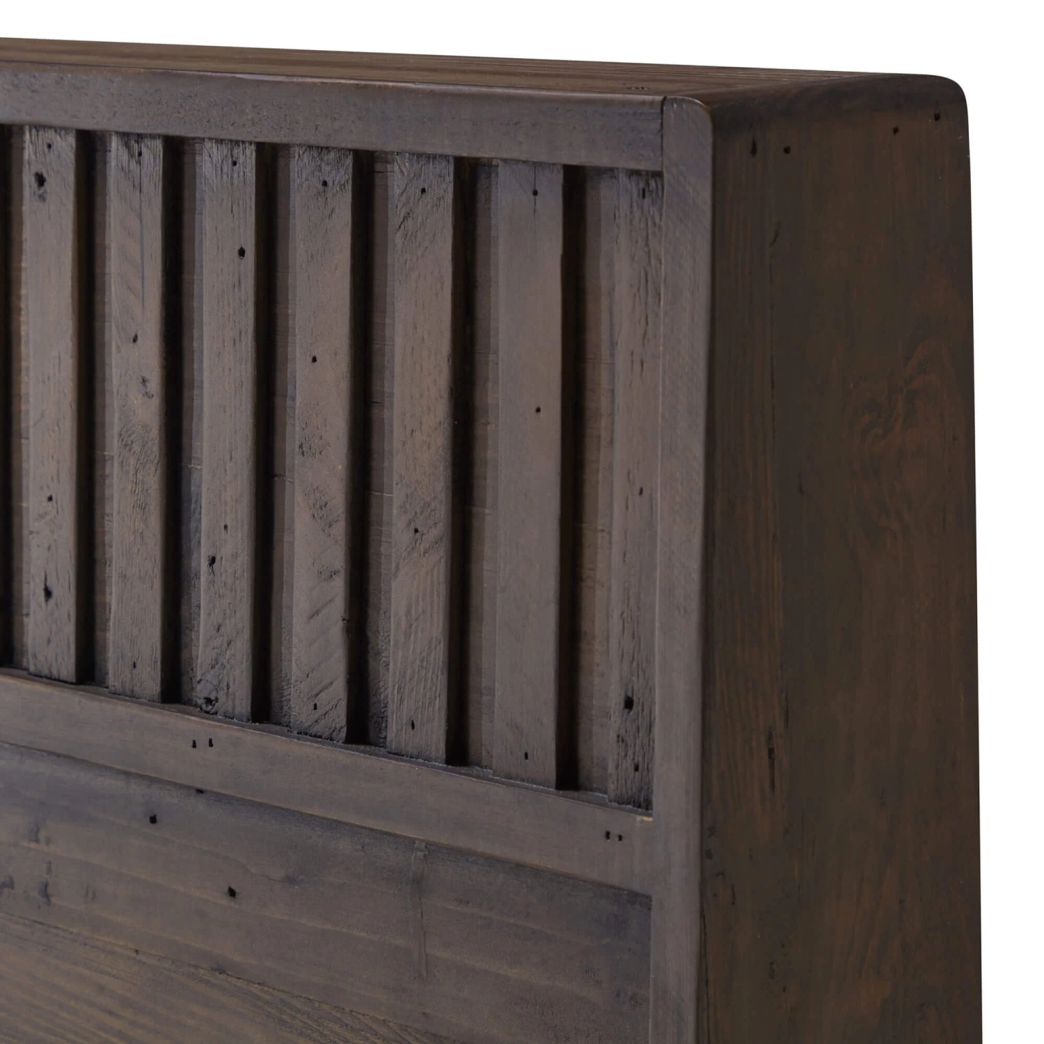 A 150cm Kingsize Bed that brings the feeling of rustic elegance to your space. Crafted from solid pine, the bed showcases the natural beauty of the wood grain and features a unique panelled design to add visual interest. With brass coloured legs that add a touch of industrial style, it creates a warm and inviting contrast.