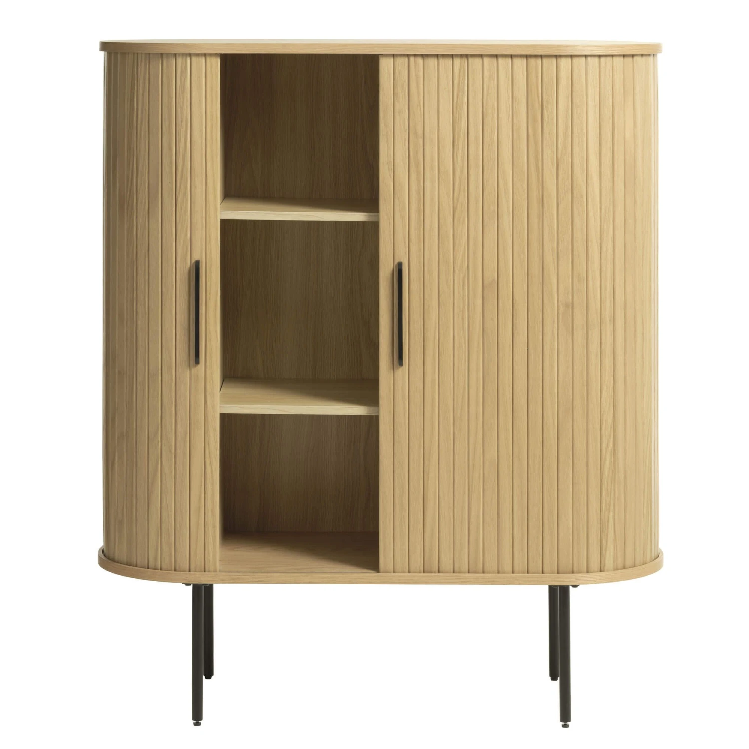 A natural tone cabinet featuring a vertical panel design with curved edges for a sleek Scandinavian style. Crafted with shelving for plenty of storage to keep your home tidy, This display cabinet also creates a beautiful space to accessorise while keeping your documents, spare glassware or living room accessories tidy.