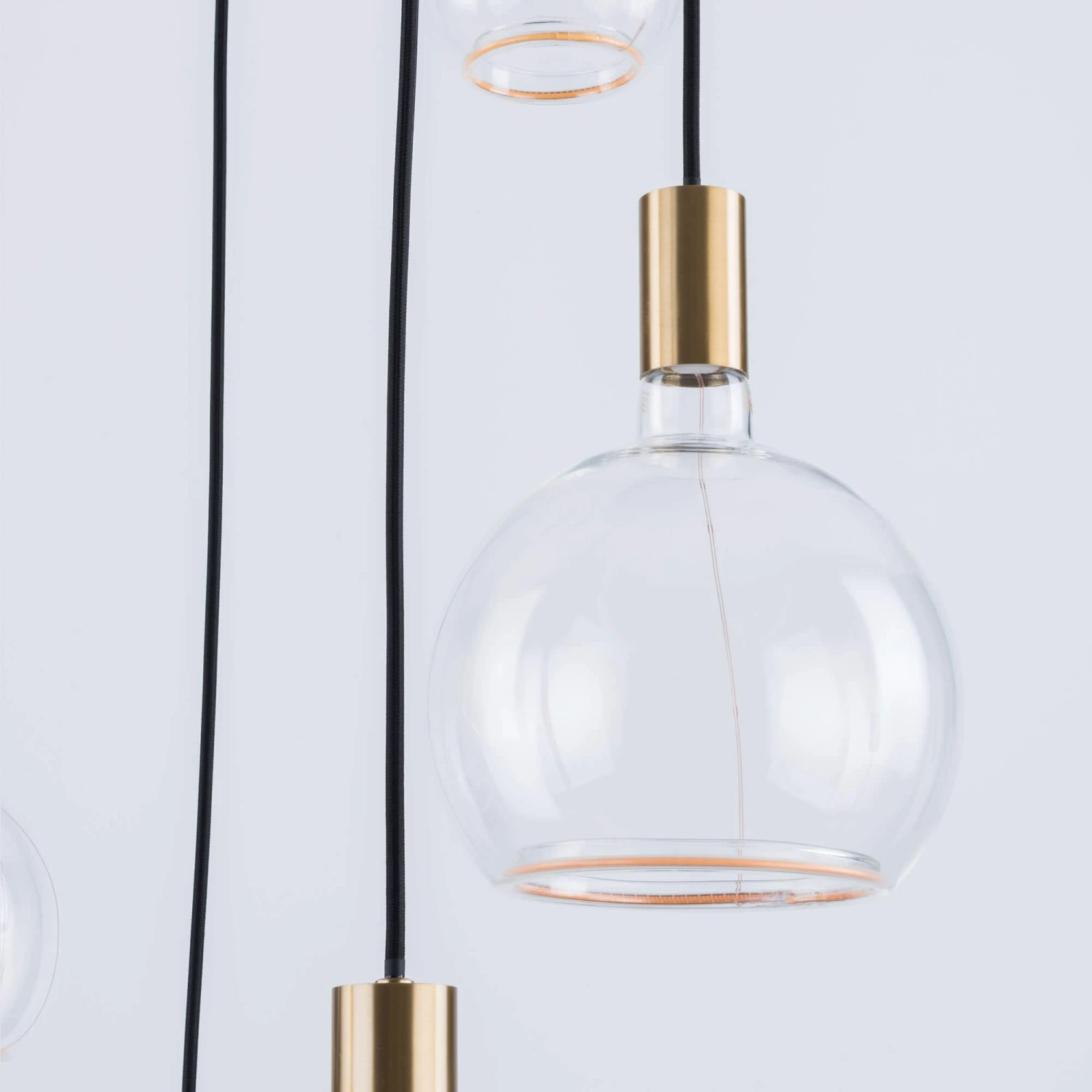 Create your own bespoke light by mixing and matching the Aura Gold 6 Light Ceiling Plate with the Aura Halo Glass LED Sphere Bulbs available in three sizes; 12.5cm, 15cm and 20cm, in clear or smoked glass finish.