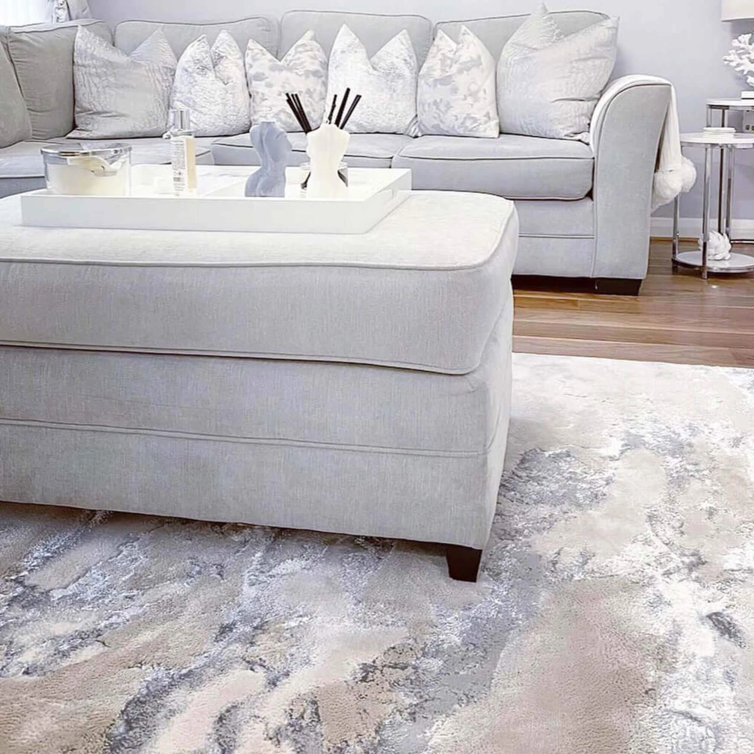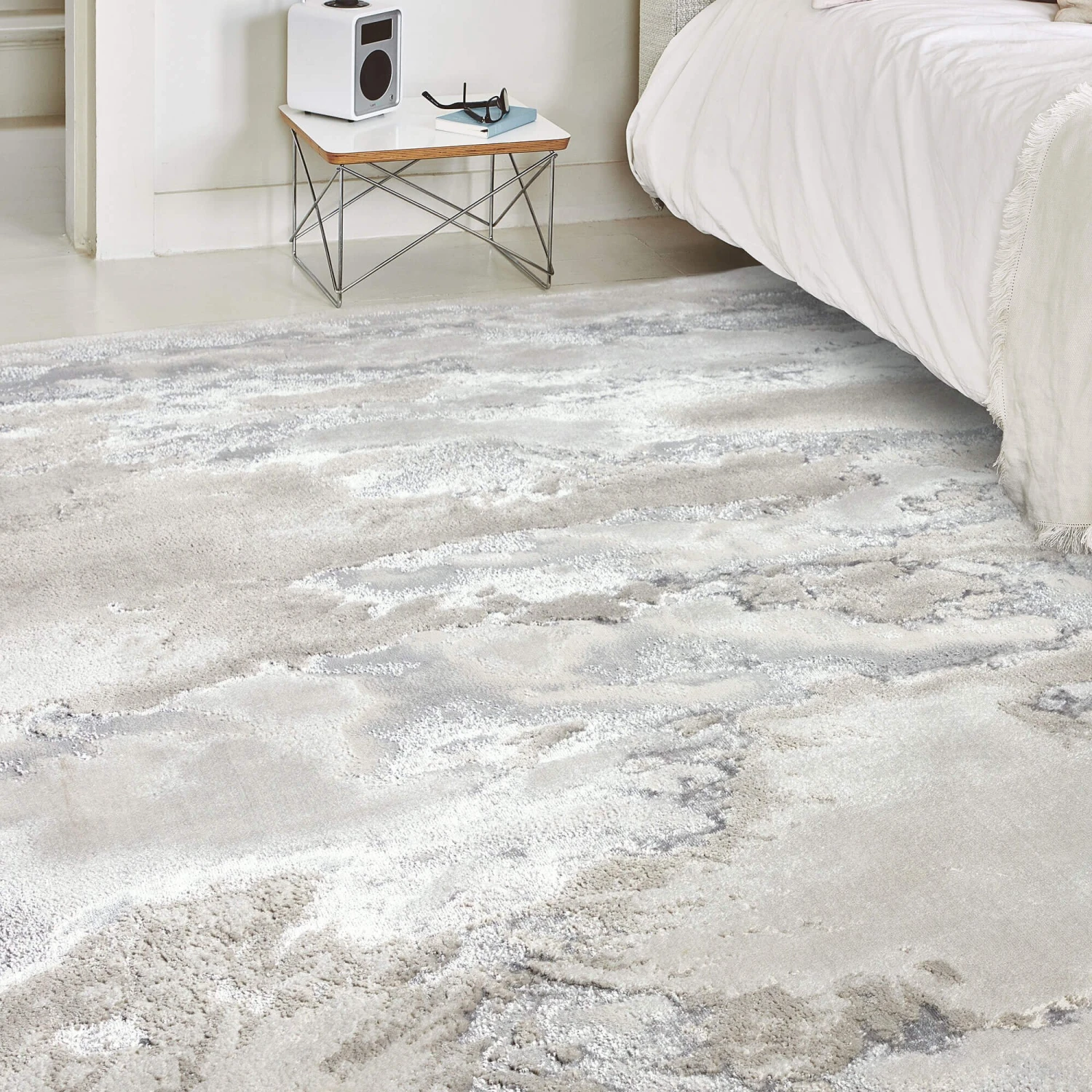 Add the perfect combination of style and practicality to your home with this 240cm x 340cm abstract, high-shine design in a stylish modern palette and lustrous pile. The machine woven construction of the Aurora Cloud rug makes a practical yet durable rug for all areas of your home.