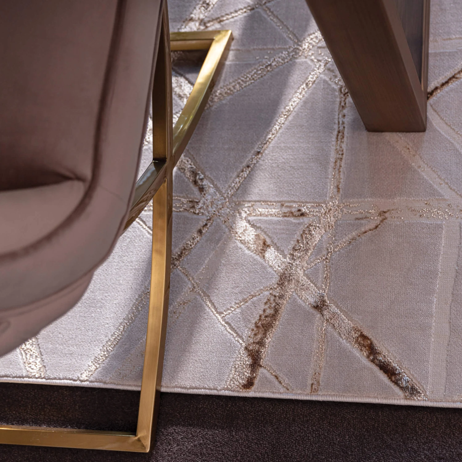 This expertly crafted rug combines a polyester and polypropylene mix with a dynamic abstract patterning and high shine fabric. The elegant Aurora Mica rug has been machine woven from high quality materials with an innovative design which provides texture and detail