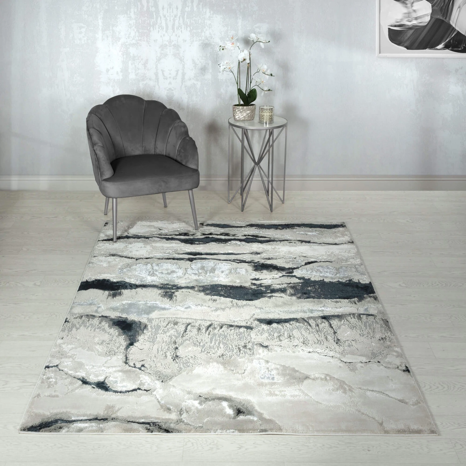Add the perfect combination of style and practicality to your home with this abstract metallic design in a stylish modern palette. The machine woven construction of the Aurora Quartz rug from Asiatic Carpets makes a practical yet durable rug for all areas of your home.