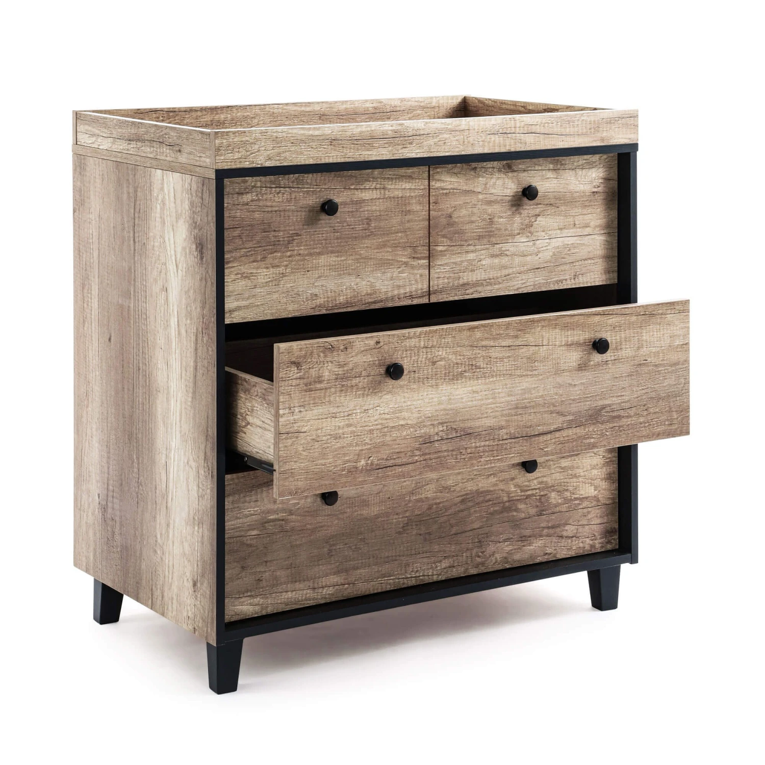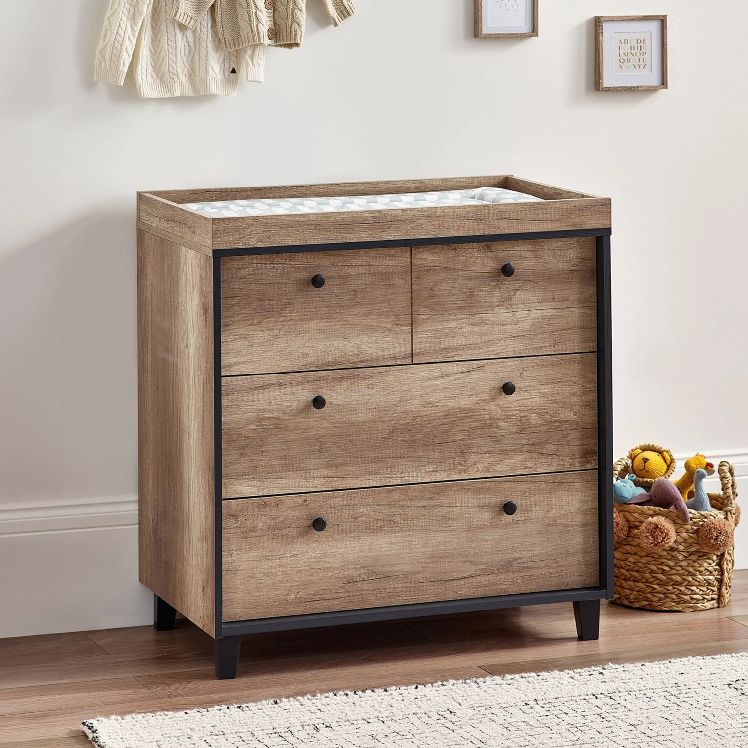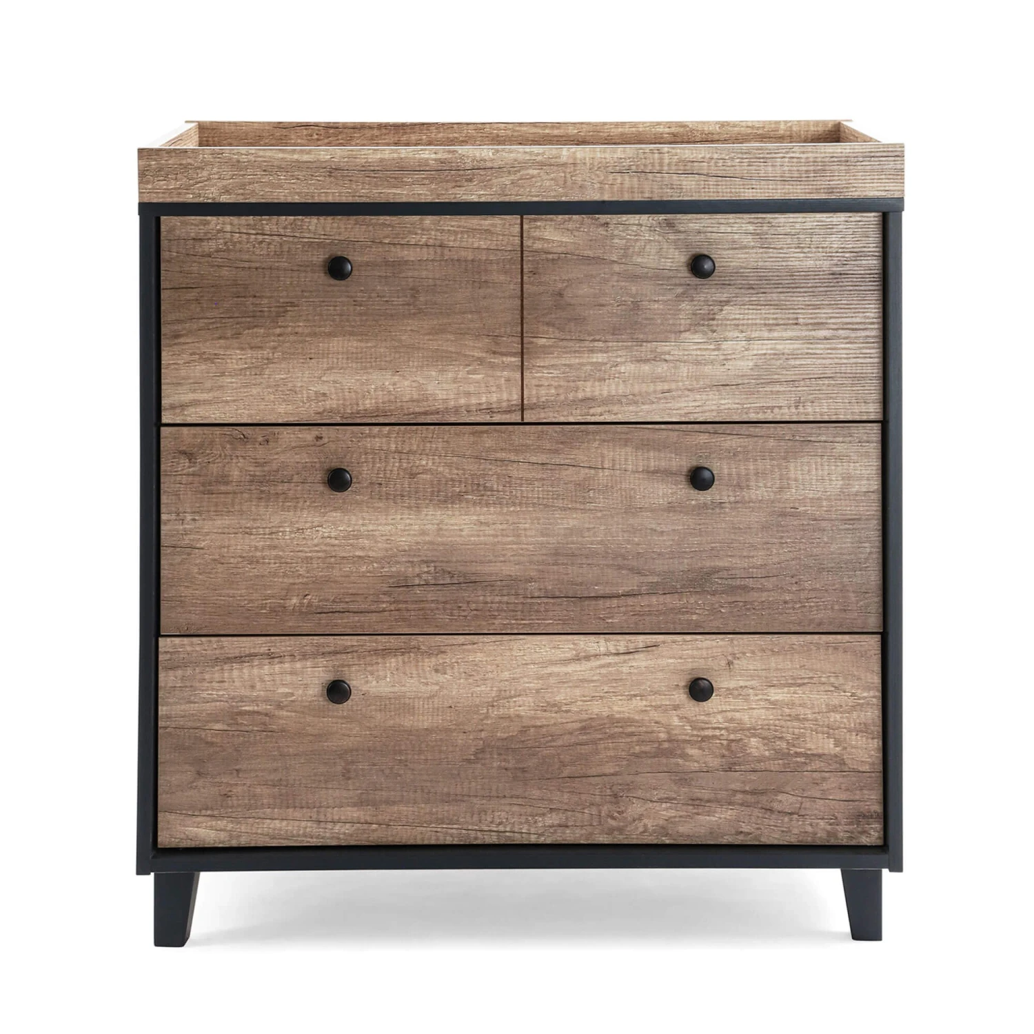 Introducing the Montana range from BabyStyle, offering warmth and a natural feel to your baby’s nursery. Made from a timeless oak finish, the Montana Oak Dresser features brushed brass finished knobs with modern slate touches on the front frame and legs.