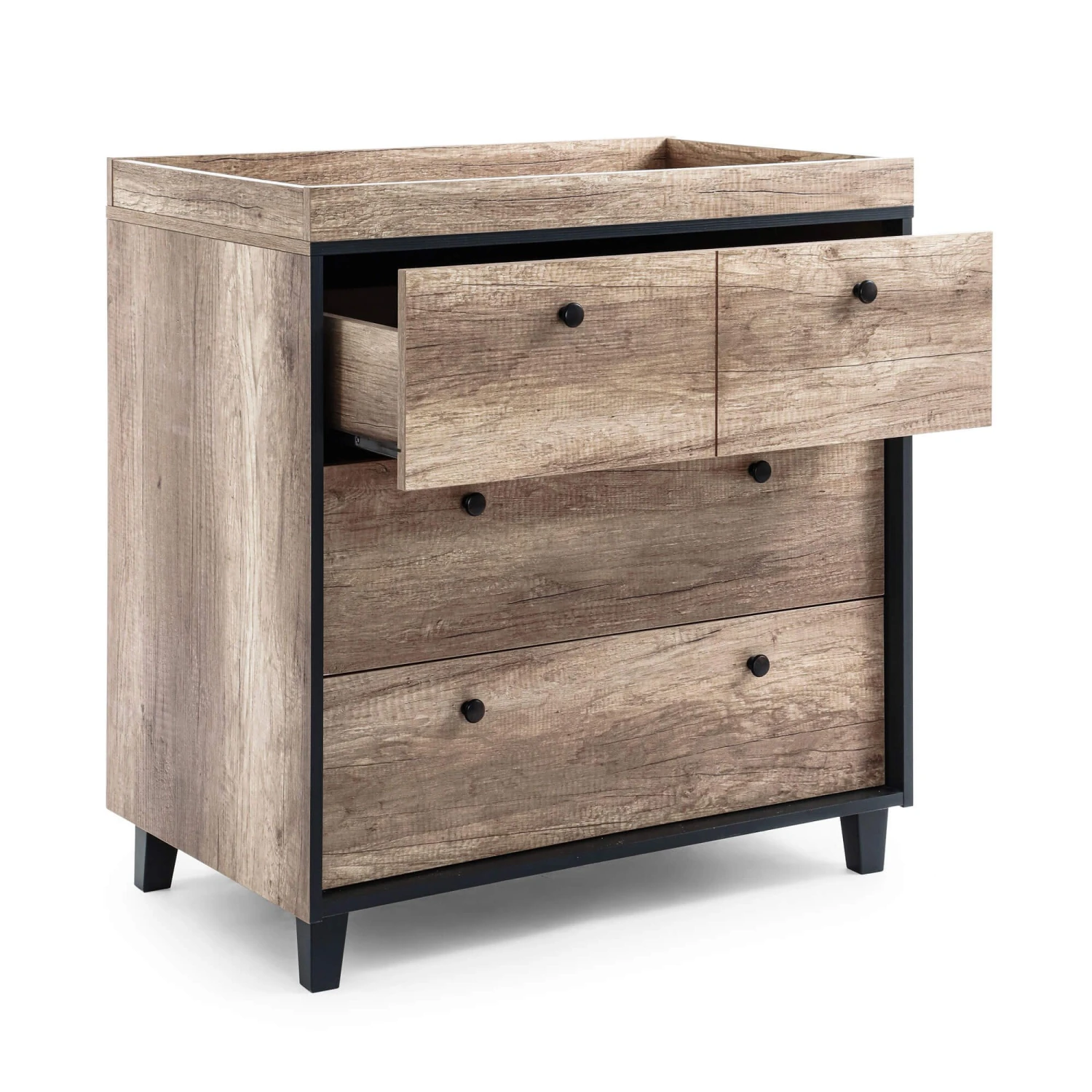 Timeless in design and effortlessly beautiful, this gorgeous dresser is conveniently made with a built-in baby changer top and has three large drawers. The top drawer is cleverly disguised as two smaller drawers, revealing one space inside and making it perfect for storing all your little one’s changing essentials.