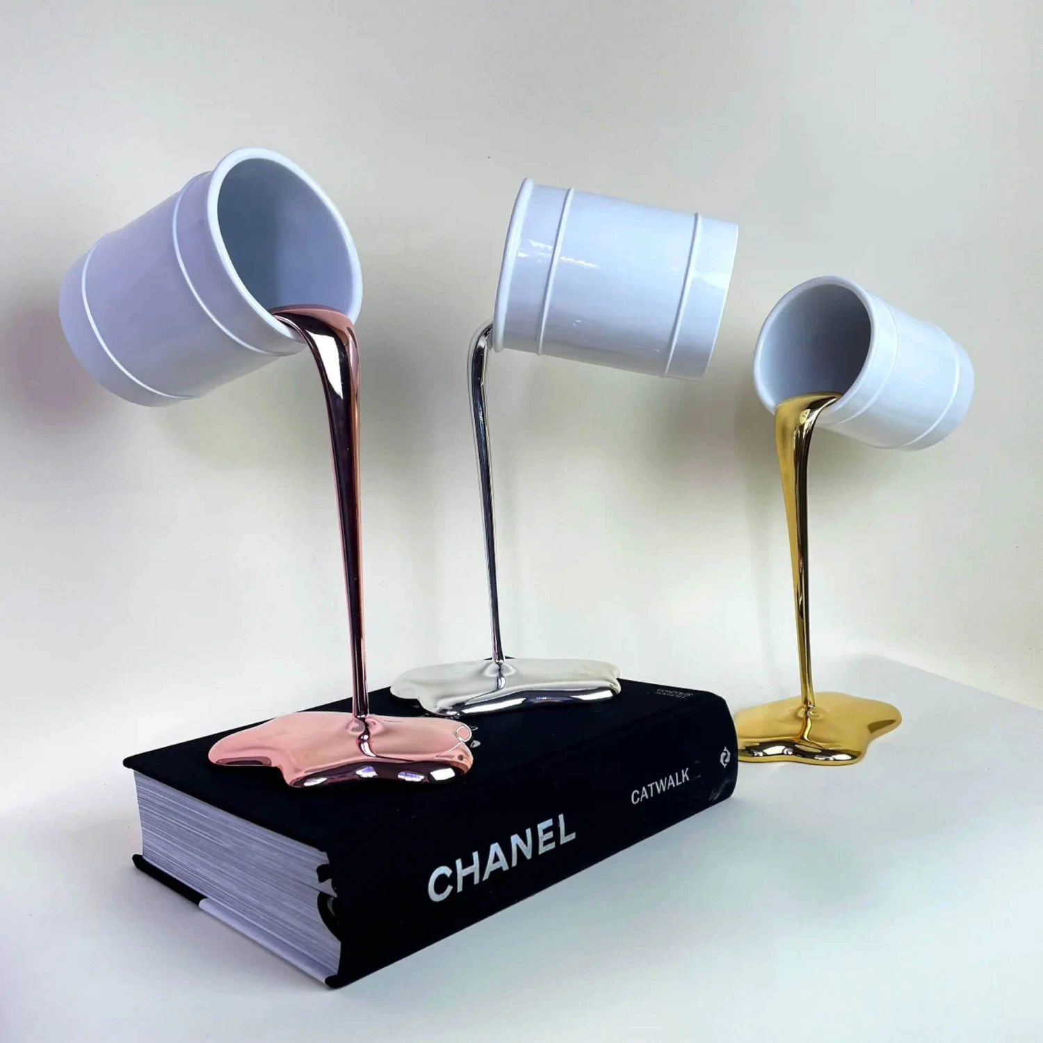 Add an artistic touch to your space with this Silver Paint Pot Sculpture. Featuring a sleek white paint pot with a shiny silver pour effect stand, this gorgeous sculpture is made from biodegradable compostable resin. Unique in its ability to redefine gravity and mesmerising in its delicate pour puddle effect, this glamorous sculpture radiates elegance and luxury, making it the perfect centrepiece for any room.