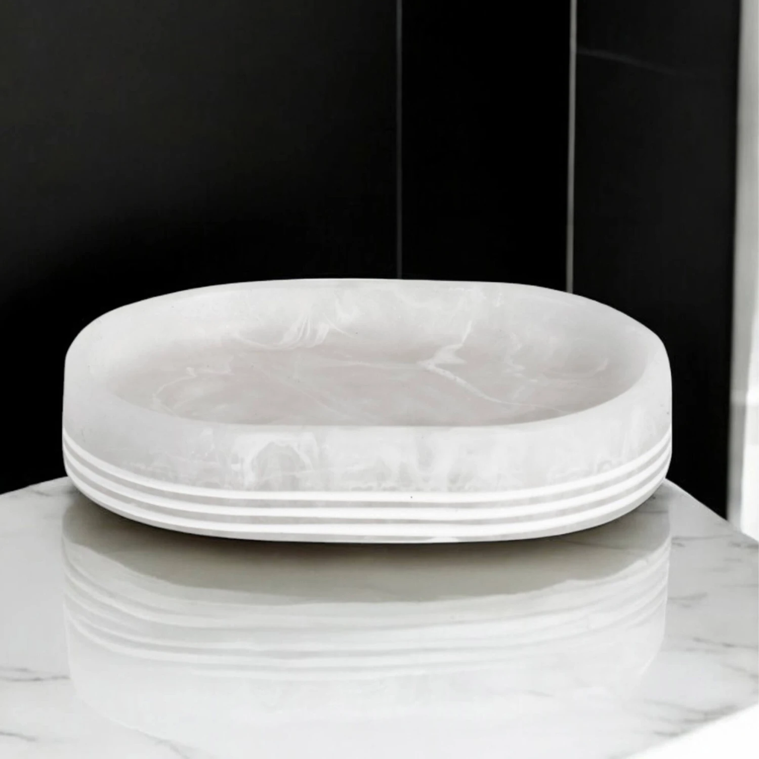 This Bianco Ivory White Resin Soap Dish has a high end, luxurious look that will leave your bathroom looking modern and glamorous. The bright colour reflects light which allows your bathroom to look brighter and provides an open feel. This soap dish features a marble like design to add to the modern look.
