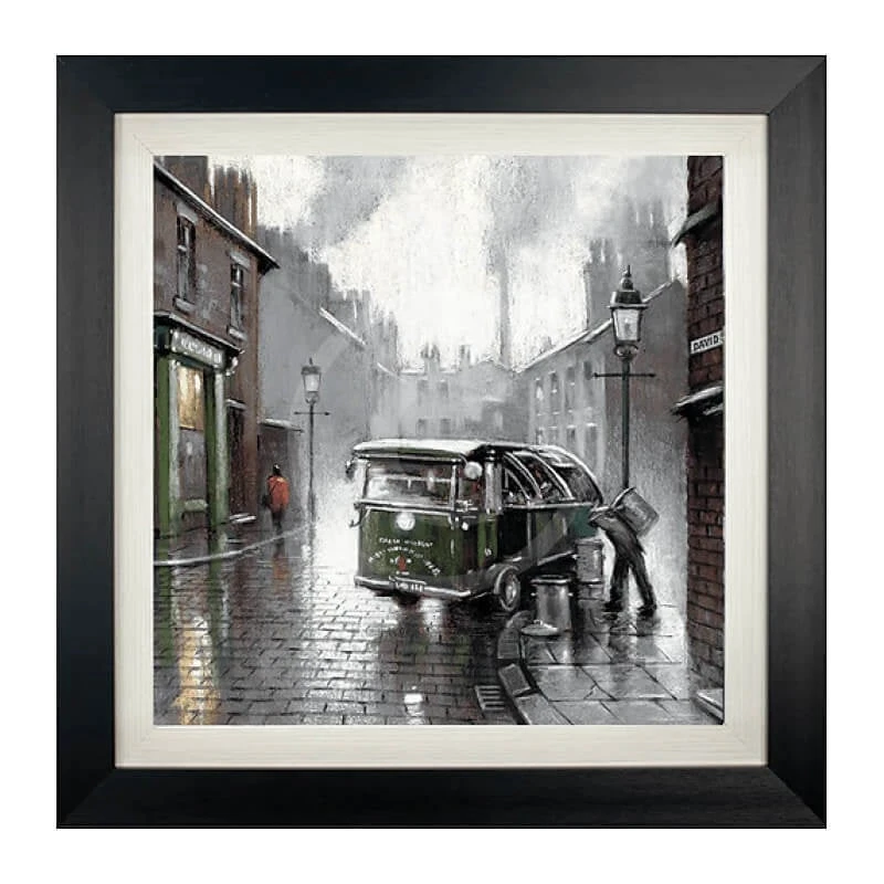 This charming print captures a quintessential British scene: Bin Day.ย This nostalgic artwork by E.ย Anthony Orme depicts a familiar picture of terraced houses and the daily ritual of waste collection. The vibrant colors and meticulous detail bring to life the everyday drama of bin day, evoking a sense of nostalgia and warmth. A perfect piece for those who appreciate the charm of everyday life and the artistry of capturing the ordinary.
