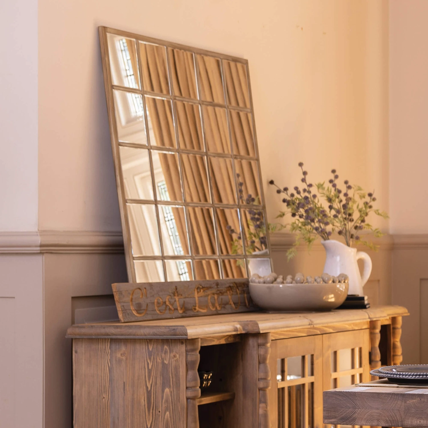 This beautiful wall mounted Blakely mirror from Libra creates an antique window inspired look and is sure to take pride of place wherever you decide to display it. Featuring a grid-like design with a decorative champagne gold frame that surrounds the inner mirrored squares, this mirror is perfect for creating the illusion of more light in your home. The Blakely Wall Mirror is perfect for making an eye catching statement in bedrooms, living rooms, hallways and more!