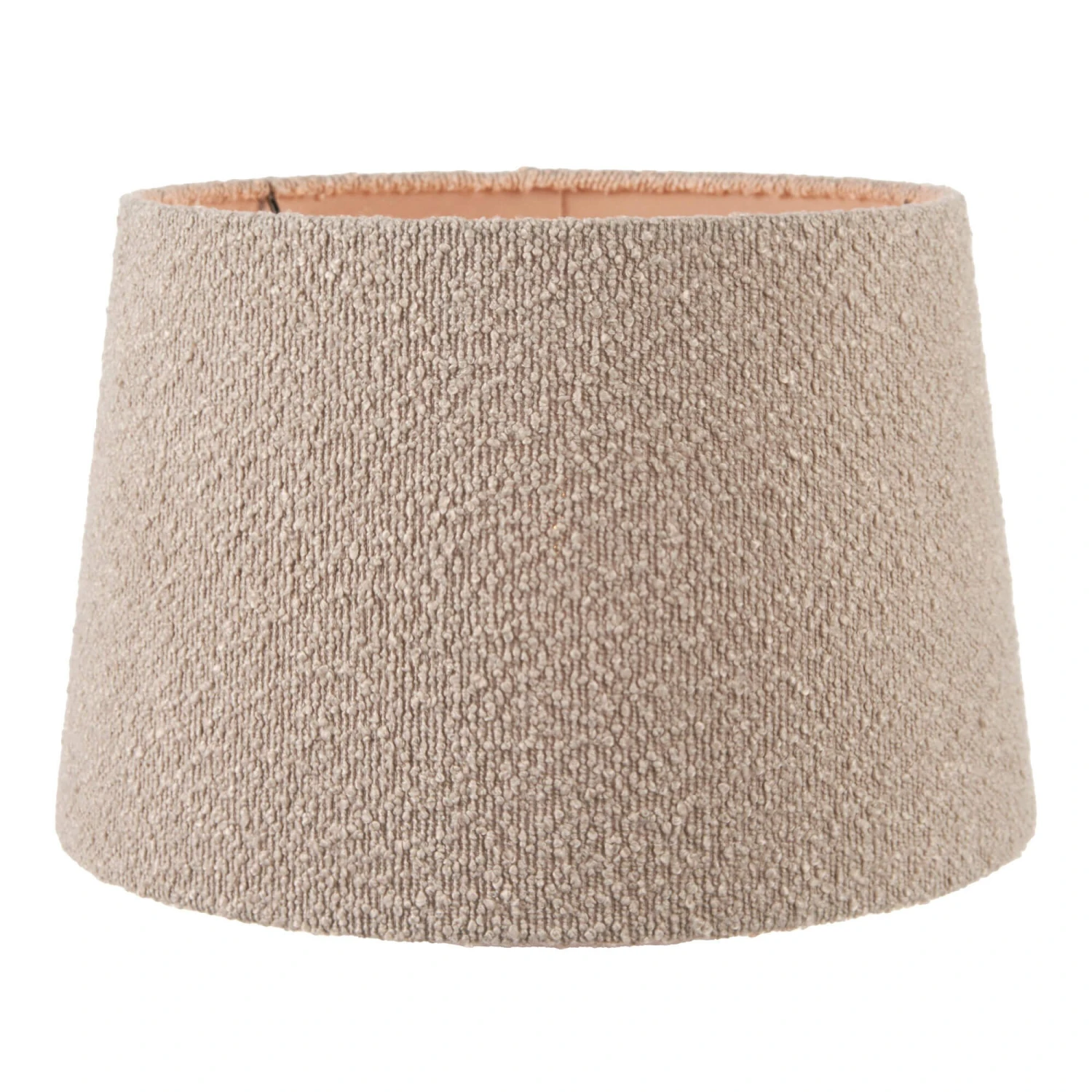 Add a classically modern style to your home with this Boucle Taupe Cylinder 35cm Shade. Crafted from a natural taupe boucle textured material, this elegant shade is lined with a matching coloured poly cotton, creating a cosy and inviting ambience when illuminated. Available in two colours and various sizes, this sophisticated shade is designed to complement any neutral interior, combining contemporary aesthetics with a sense of timeless style, perfect for adding a touch of warmth and texture to your space.