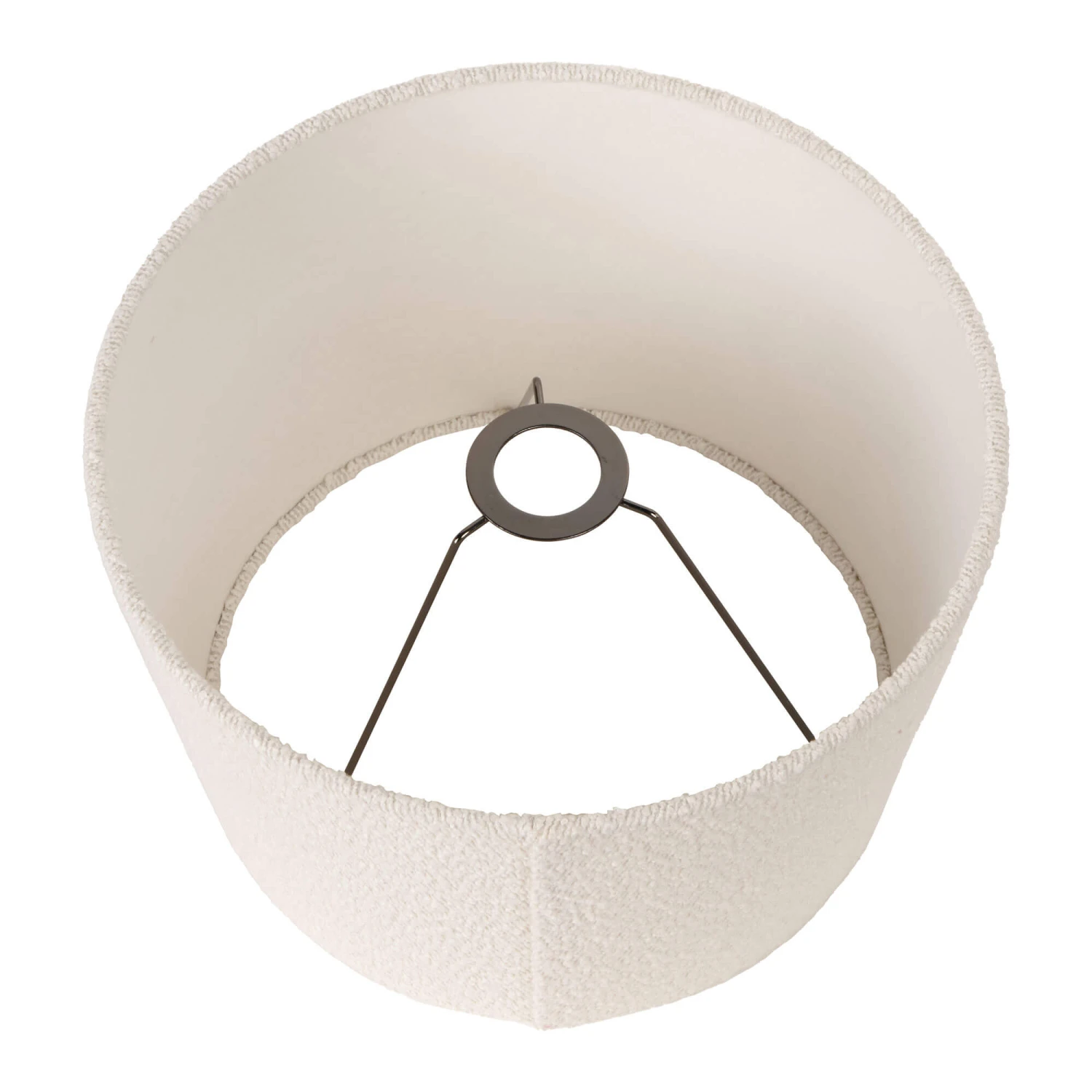 Add a classically modern style to your home with this Boucle White Cylinder 35cm Shade. Crafted from a natural white boucle textured material, this elegant shade is lined with a matching coloured poly cotton, creating a cosy and inviting ambience when illuminated. Available in two colours and various sizes, this sophisticated shade is designed to complement any neutral interior, combining contemporary aesthetics with a sense of timeless style, perfect for adding a touch of warmth and texture to your space.