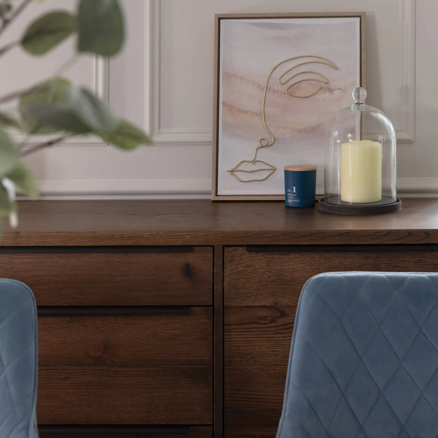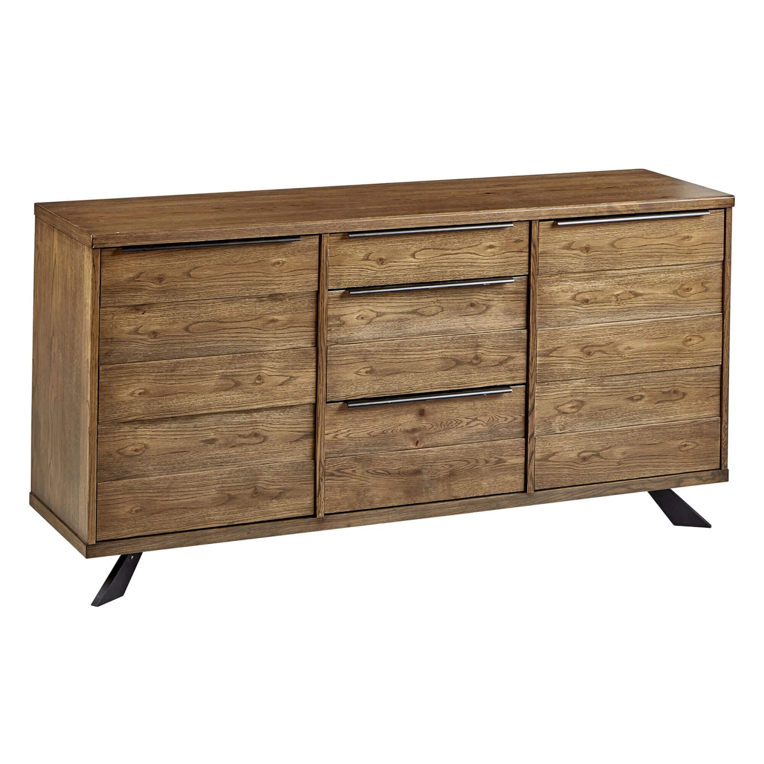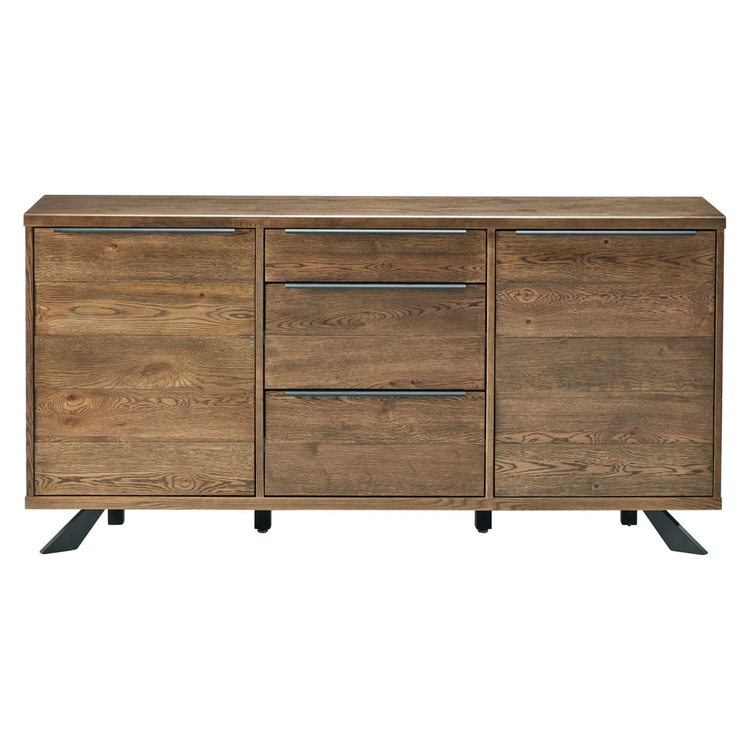 The Bronx Sideboard features two spacious cupboards and 3 drawers, perfect for added storage and for keeping all of your dining equipment neat and tidy. The cupboard doors and drawer fronts have a paneled effect for added interest, with sleek and stylish long metal handles to enhance the natural tones of the sideboard whilst adding to the industrial feel