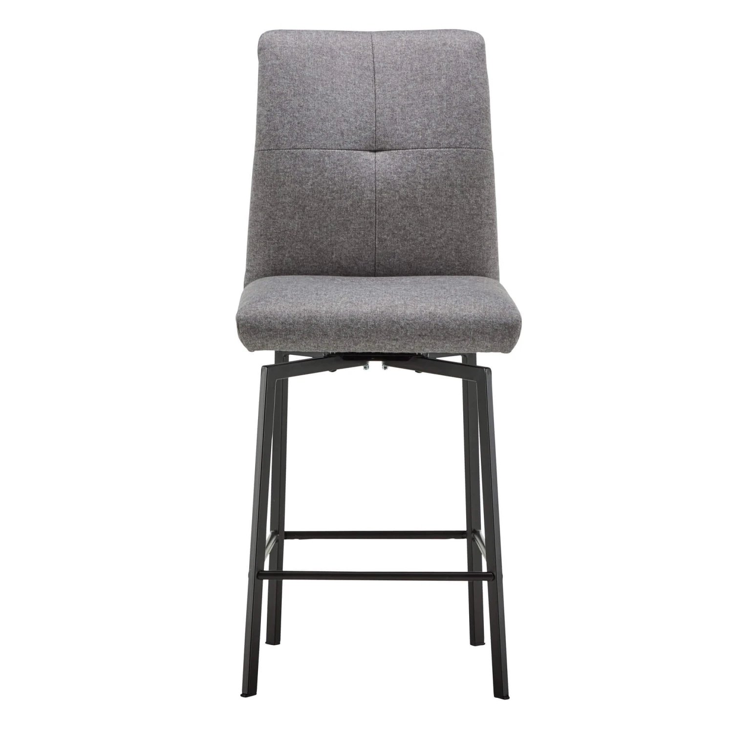 The Cabley Swivel Counter Bar Stool is upholstered in a soft fabric that enhances its contemporary design. Its gently contoured backrest subtly curves backwards at the top, offering both style and ergonomic comfort. A refined piped edge frames the backrest, while distinctive plus-shaped tufting in the centre of both the backrest and seat creates four clearly defined squares, lending an elegant, structured detail to the stools’ silhouette. The seat itself is well padded, ensuring supportive comfort.