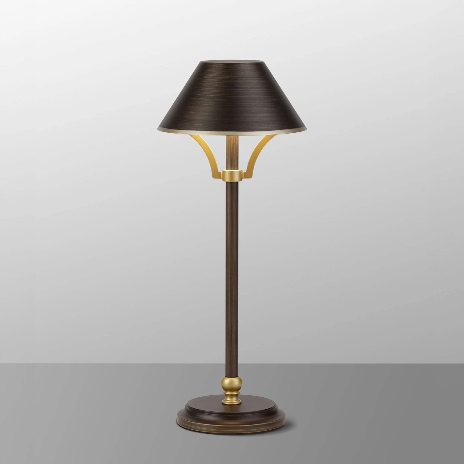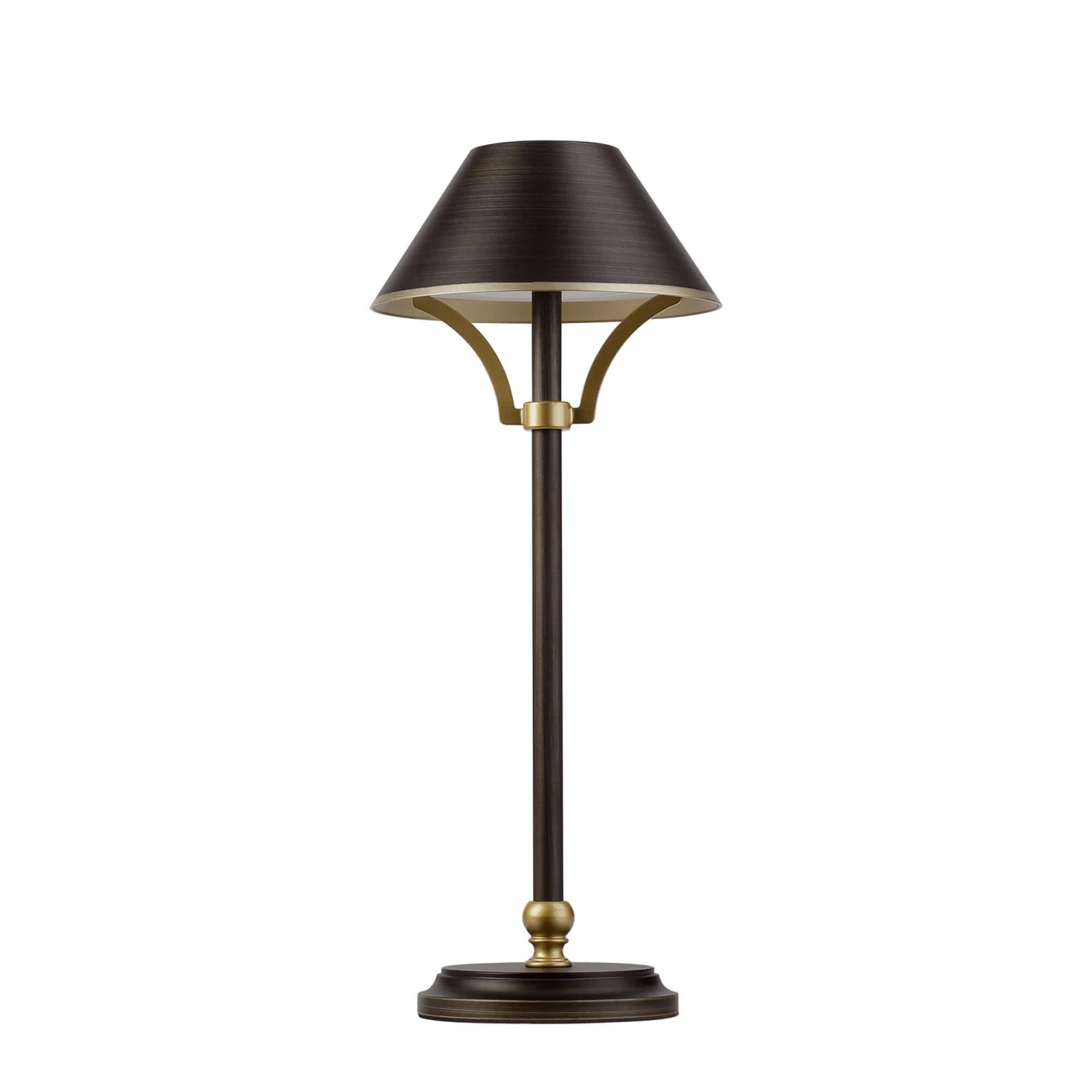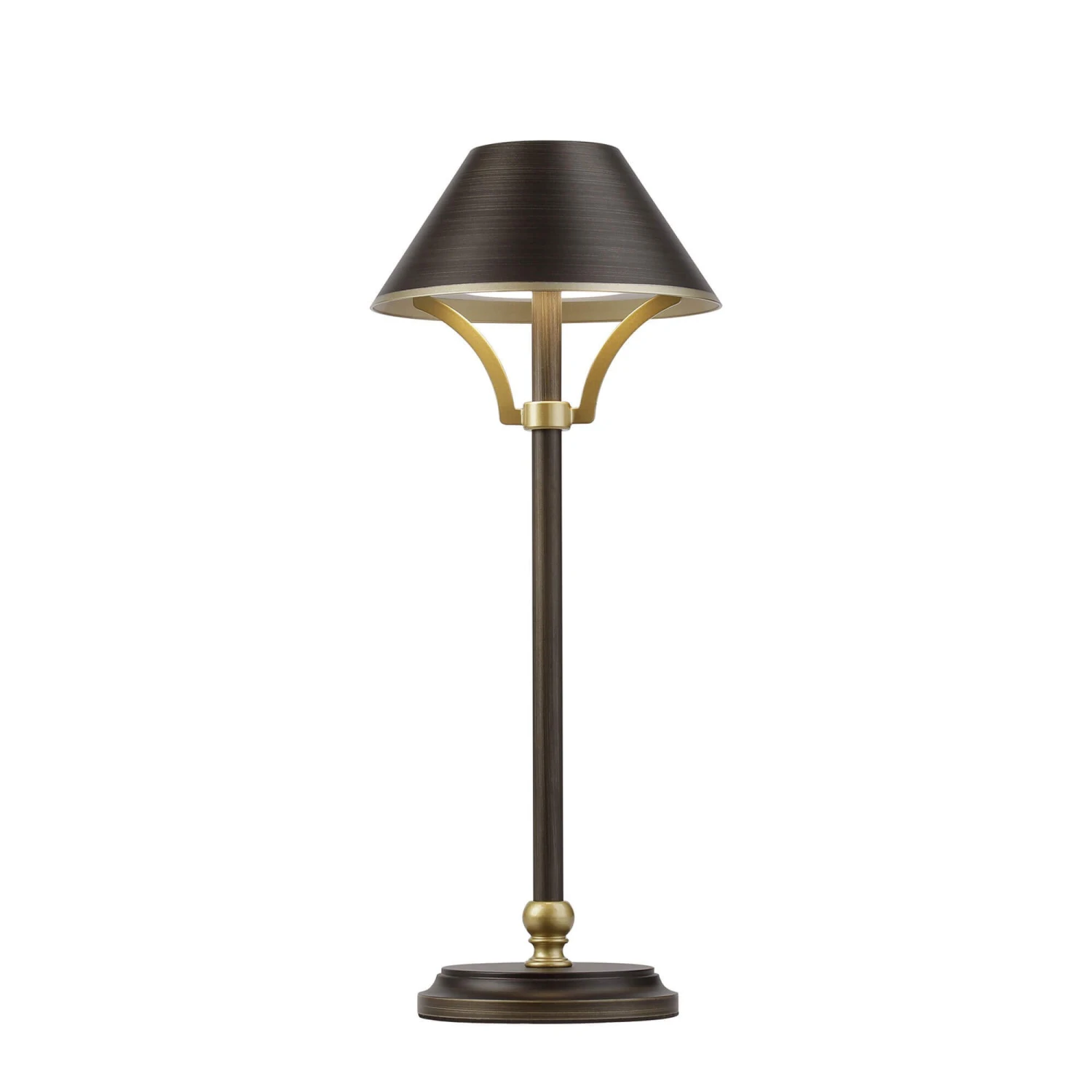 The Carla Bronze Rechargeable Table Lamp adds a modern twist to a very traditional style. Illuminable by an integral LED, this beautiful table lamp features a flat top conical iron shade and base in a bronze finish with acrylic gold trims. Operated by a 3-step dimmer, the LED of the lamp is rechargeable via a type C USB cable for convenient charging. Available in three colours; bronze, cream and green, this graceful and practical table lamp is perfect placed on your bedside table or in the office.