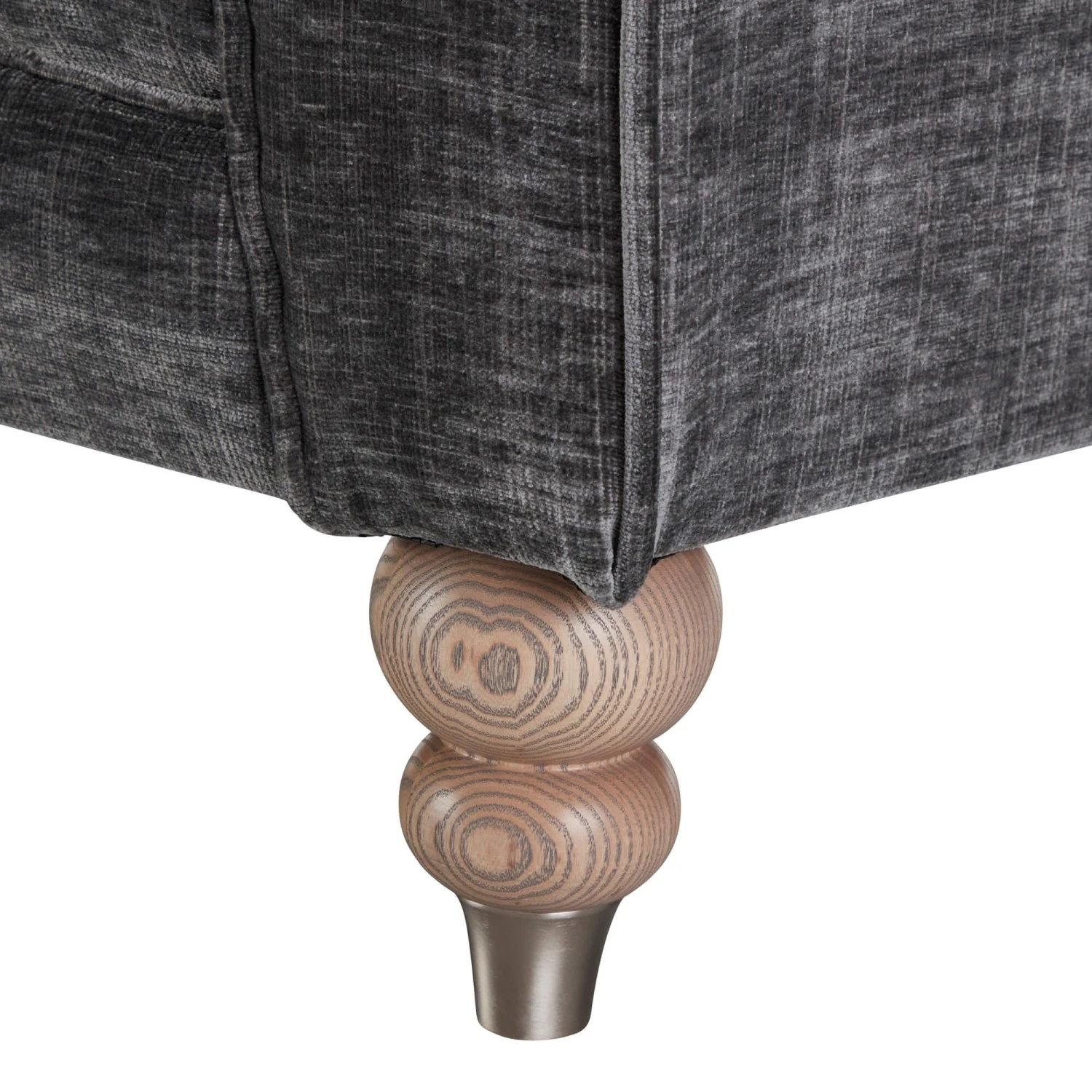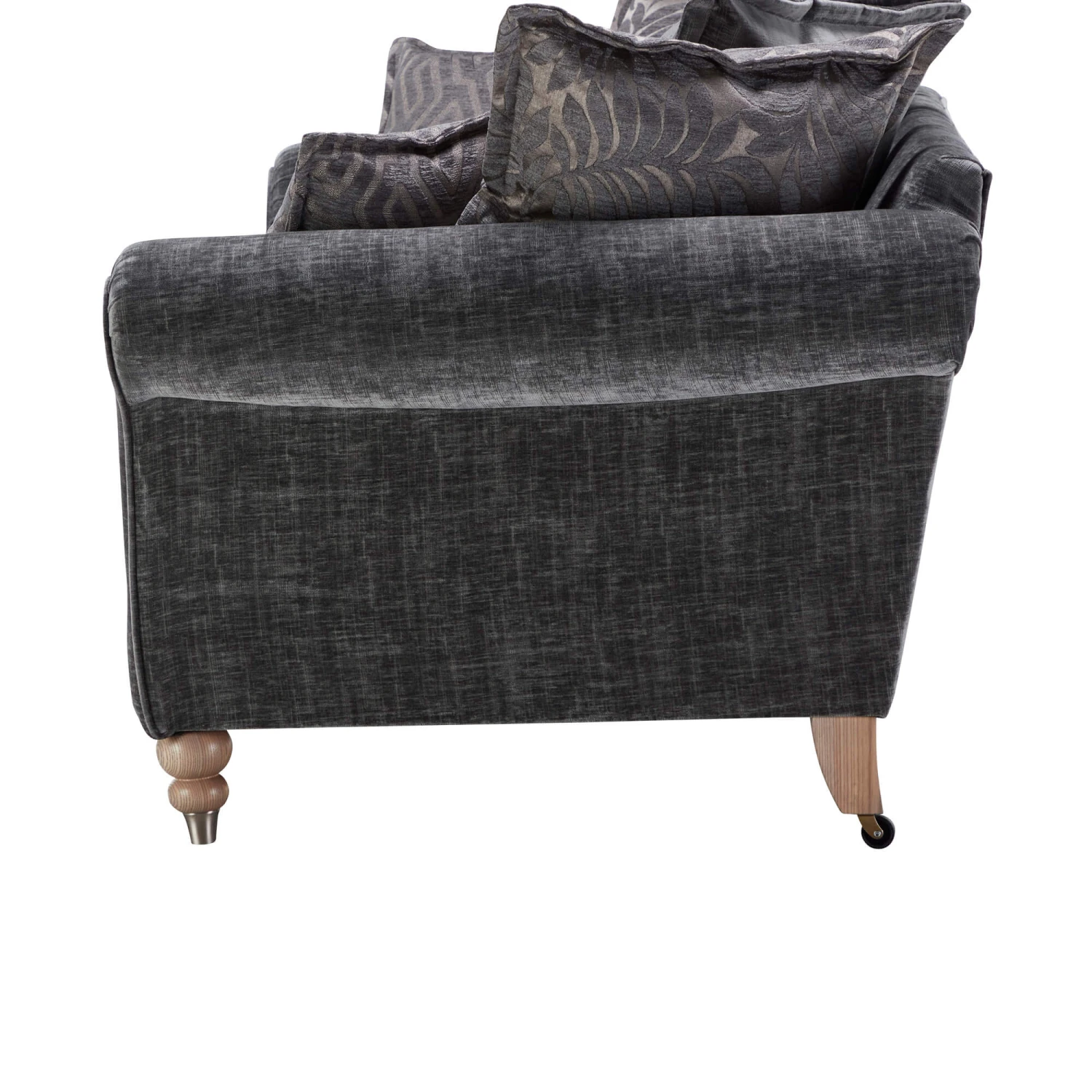 Packed with timeless character and traditional charm, the Carolina sofa inherits the hallmarks of high quality detailing that we associate with the best of British manufacturing. Each piece is hand crafted with meticulous detailing, with a gorgeous palette of charcoal greys, slate velvety chenille and patterned damask accents to create a fusion of texture and interest.