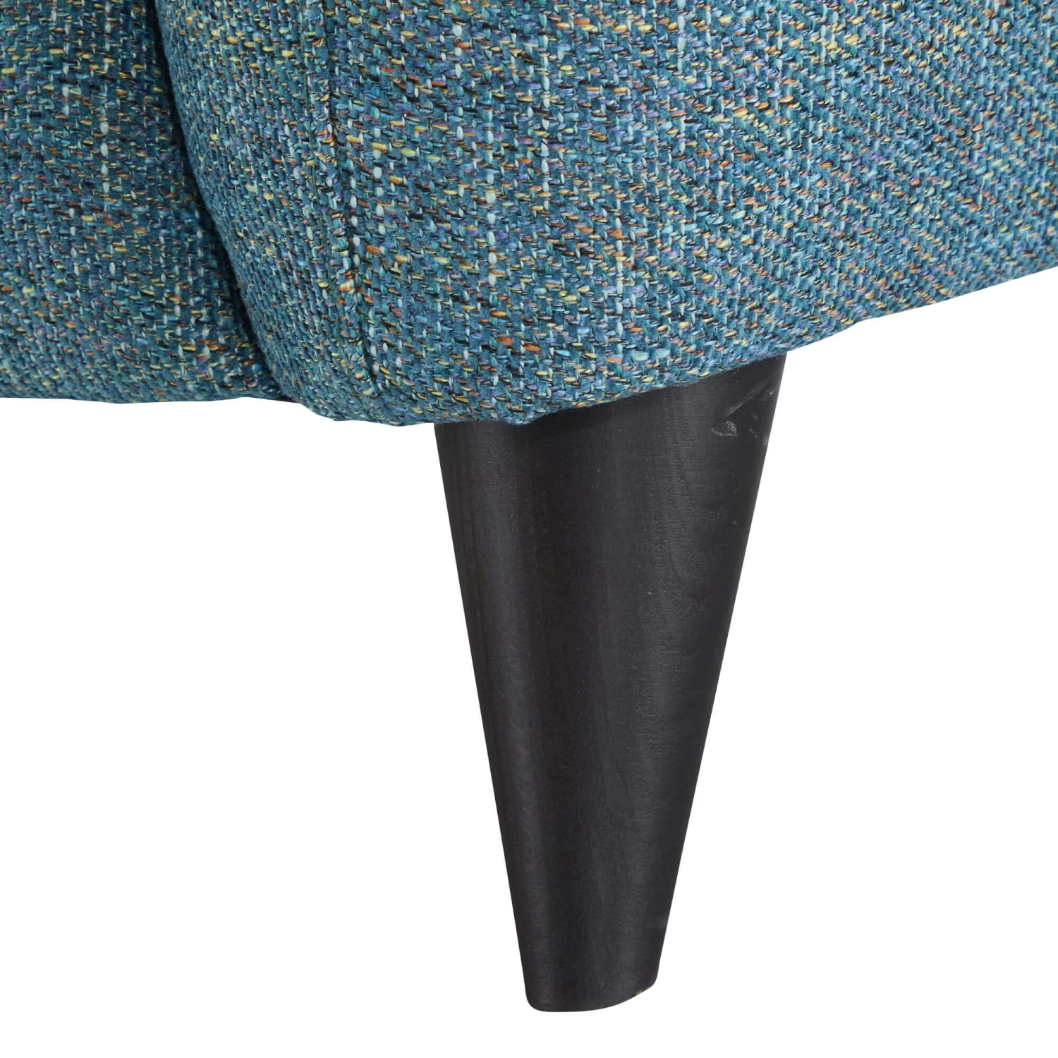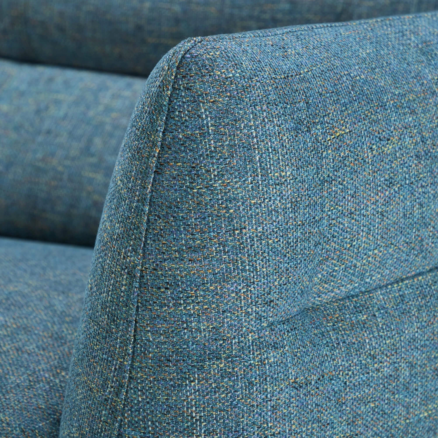 The Carrera sofa features a sumptuously padded, panelled design, filled with high density foam and fibre to provide optimum comfort and relaxation. The thoughtfully designed backrest and armrests offer excellent lumbar and arm support, ensuring a comfortable seating experience. Upholstered in a plush teal blue fabric, the Carerra has a subdued and sophisticated feel, perfect for pairing with warm tones like browns and creams, or for adding depth and contrast to lighter palettes. Slender wooden legs in a coal black finish support the sofa, further enhancing the sleek aesthetic, to create a sofa that looks as good as it feels.