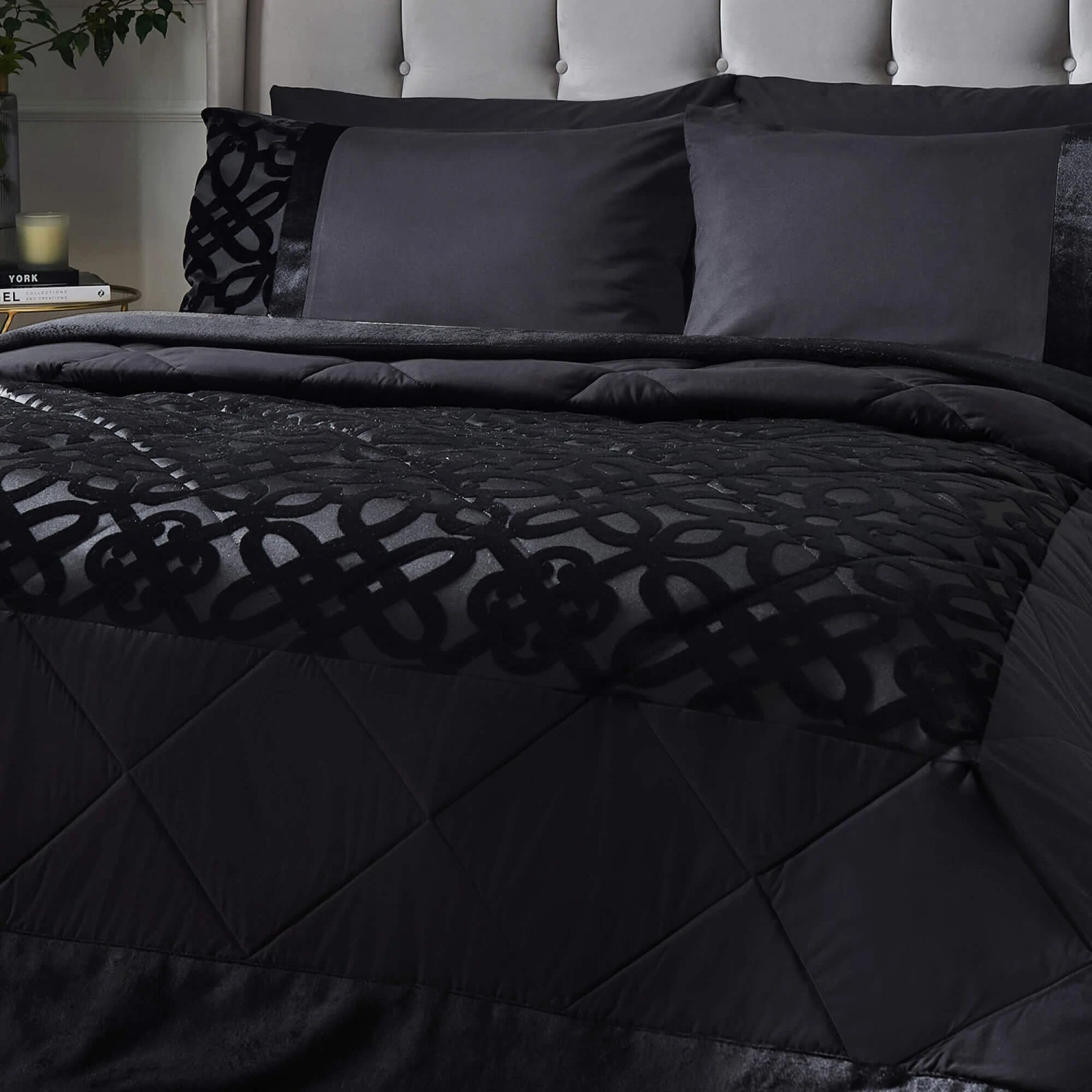 Catherine Lansfield Lattice Velvet Black Bedspread