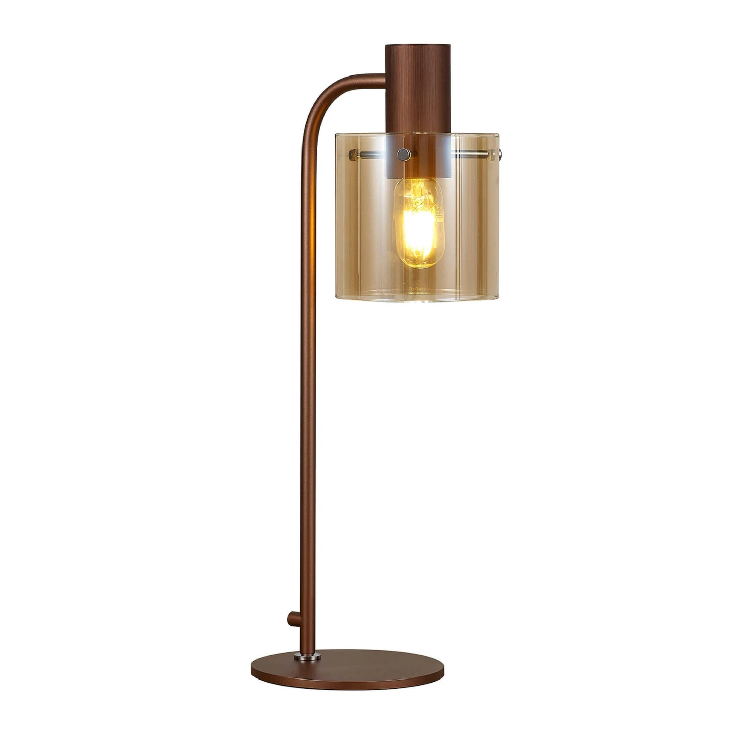 This beautiful modern Chelsea Mocha & Amber Desk Lamp, finished in a deep mocha colour with an amber coloured glass shade, offering versatility with a unique and stylish design. Featuring a cylindrical design, rich colouring and subtle chrome accents, the light is perfect for adding a warm, industrial inspired look to a study.