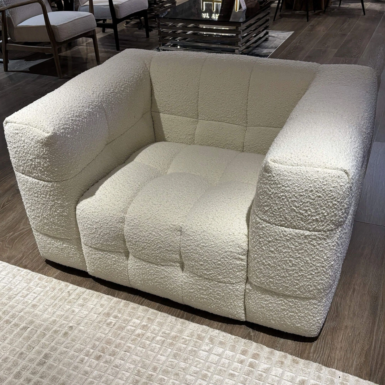 Create a tranquil and elegant space to relax and unwind with the beautiful Cosima Armchair. Upholstered in an on-trend cream boucle fabric, the Cosima Armchair is the epitome of chic design, working well with a variety of home interiors thanks to its neutral and versatile design. With its chunky, boxy frame and deep channel stitching for a square panelled effect, the Cosima is perfect for creating a timeless statement in any home.