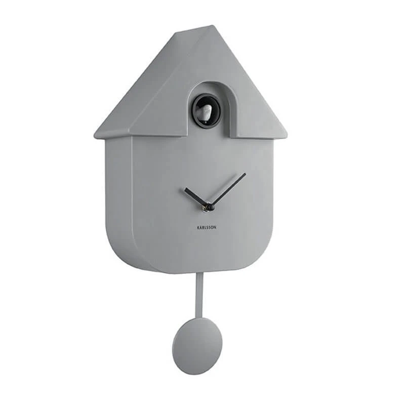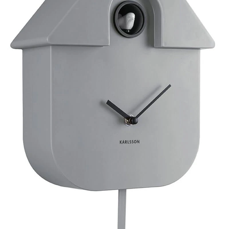 This retro style cuckoo clock offers a modern twist to make a statement piece in your home. Crafted in a classic mouse grey with contrasting black hands for a minimalist look.