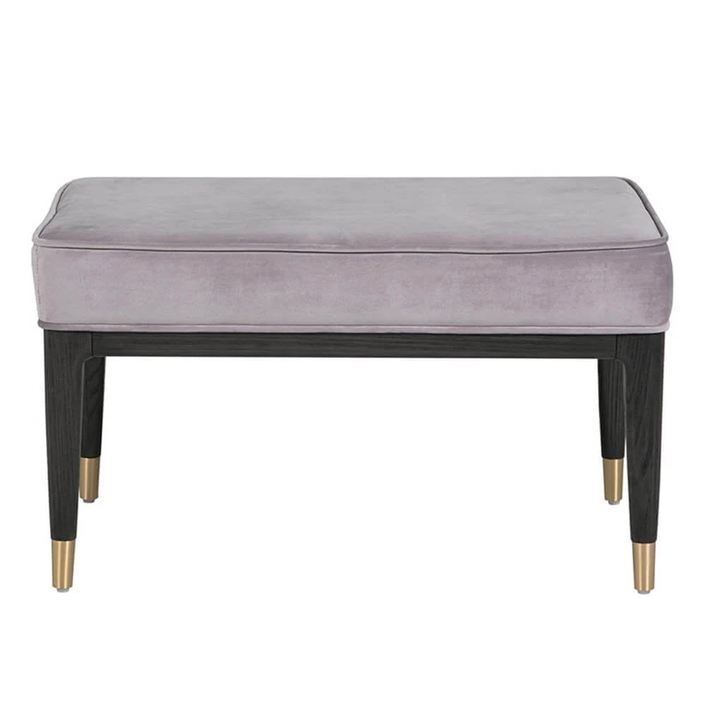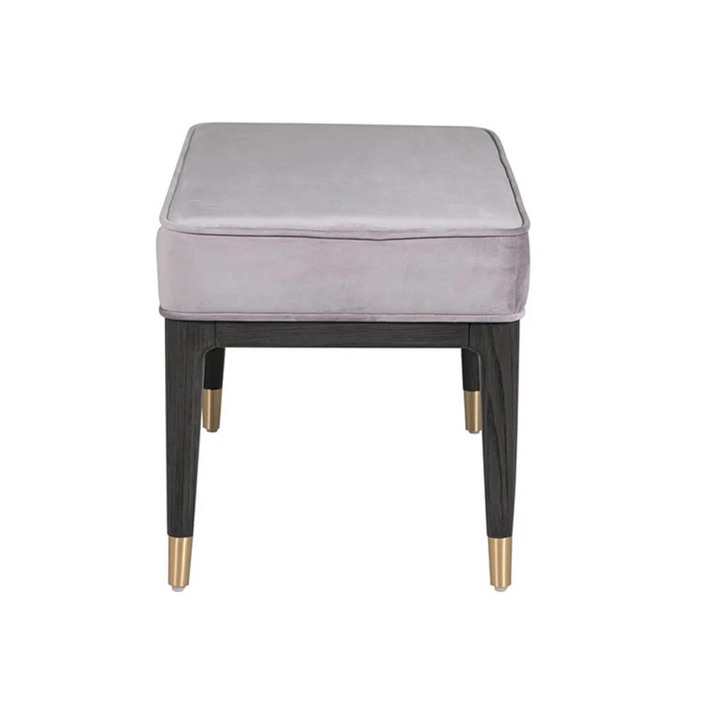 The Davina dressing stool features lavish grey velvet upholstery. Slim tapered legs create a streamlined silhouette, with gold coloured feet enhancing the contemporary look perfectly. With a variety of coordinating pieces for you to choose from, the Davina collection provides everything you may need to create a practical and well-organised bedroom space.