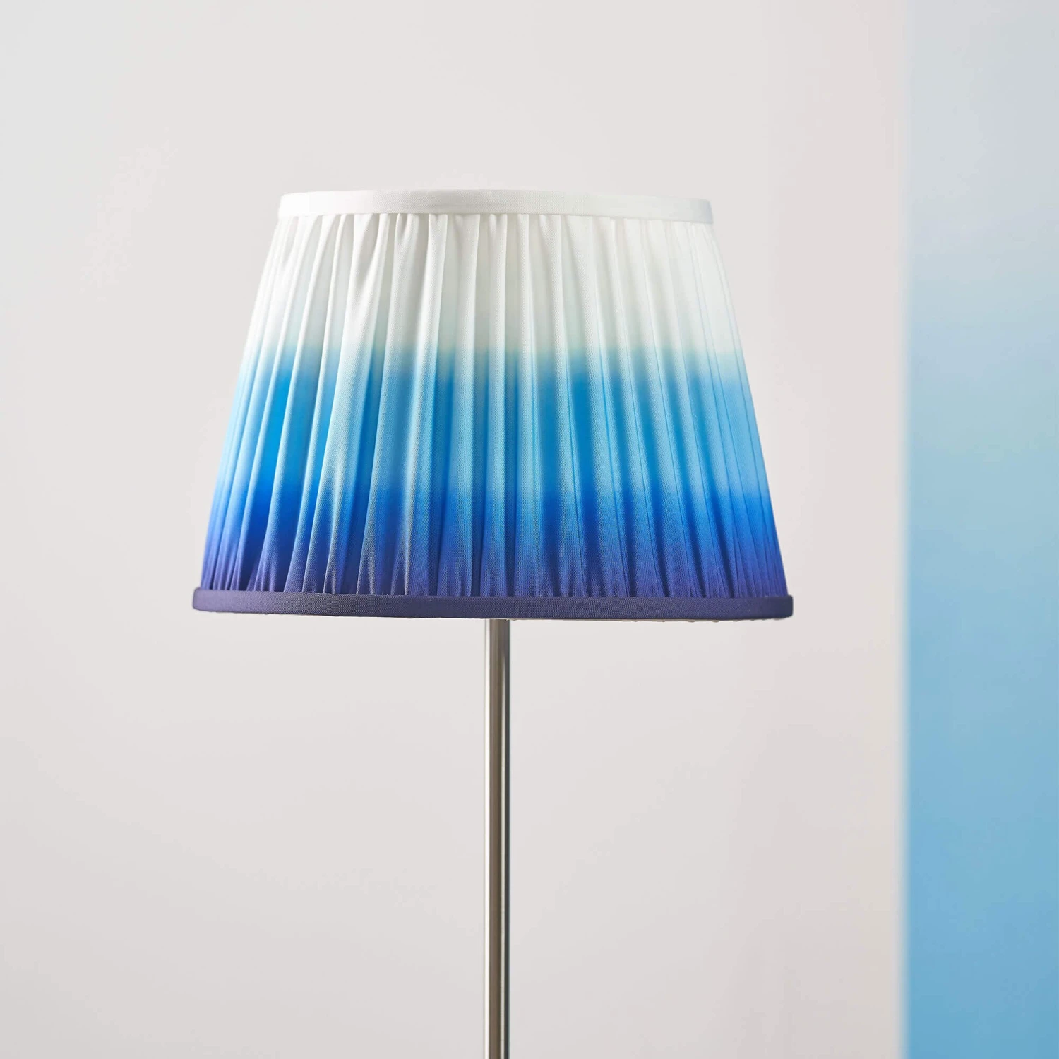 Introduce a bright and captivating pop of colour to your living space with this Savoie Cobalt Blue 14 Inch Pleated Shade from Designers Guild. Made from polyester, this eye-catching hand pleated lamp shade features the striking Savoie print by Designers Guild, showcasing a signature two toned ombre in shades of graduating blue and a tapered profile, creating a contemporary yet classic look. Available in two colours and various sizes, this stylish lamp shade is perfect for adding a welcoming and sophisticated appeal to range of home interiors, making it able to look fantastic on a multitude of lamp bases.