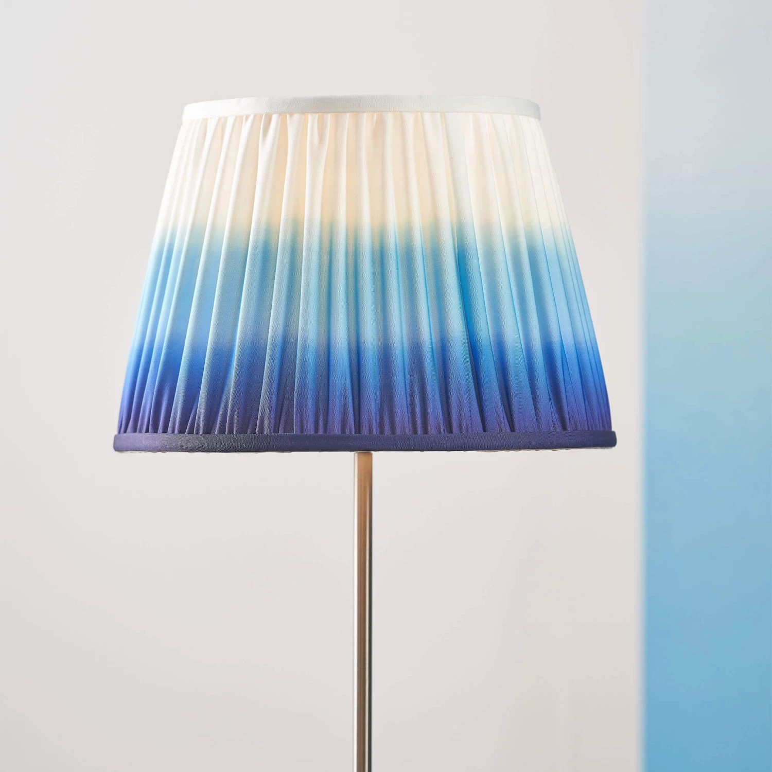 Introduce a bright and captivating pop of colour to your living space with this Savoie Cobalt Blue 16 Inch Pleated Shade from Designers Guild. Made from polyester, this eye-catching hand pleated lamp shade features the striking Savoie print by Designers Guild, showcasing a signature two toned ombre in shades of graduating blue and a tapered profile, creating a contemporary yet classic look. Available in two colours and various sizes, this stylish lamp shade is perfect for adding a welcoming and sophisticated appeal to range of home interiors, making it able to look fantastic on a multitude of lamp bases.