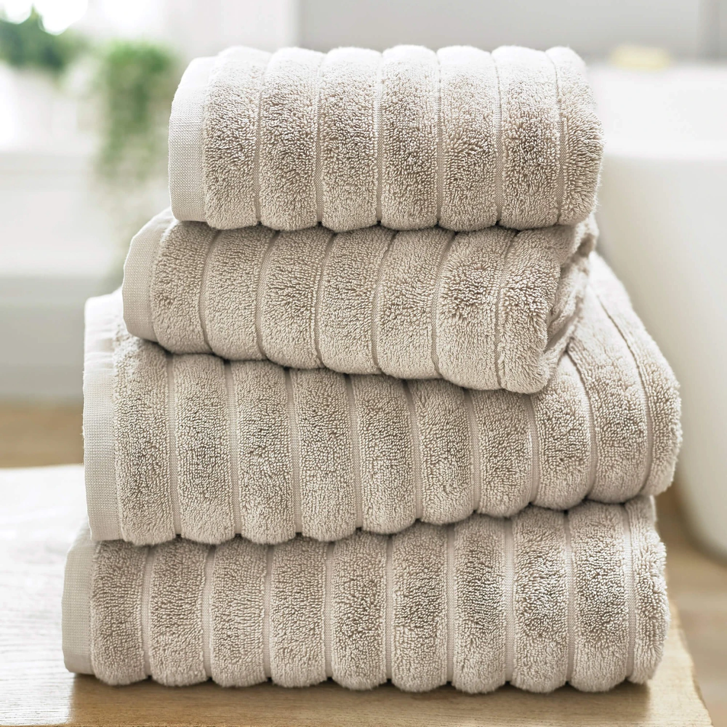The thick stone bath sheet with it’s stylish ribbed texture adds a touch of sophistication to your space. Being made from 100% cotton, the bath sheet is soft to the touch and is absorbent which makes it ideal for your bathroom environment.