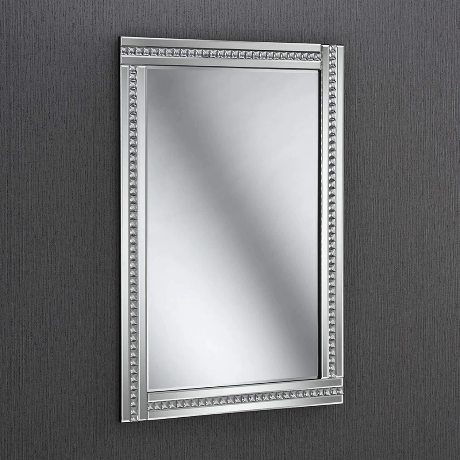 This Diamonds Mirror is perfect for adding a contemporary look to your room or hallway. The mirror features a diamond border pattern around the outside with a large, rectangular mirror in the middle. This large mirror is perfect for hanging in your living room, bedroom or hallway to provide a classical feel.