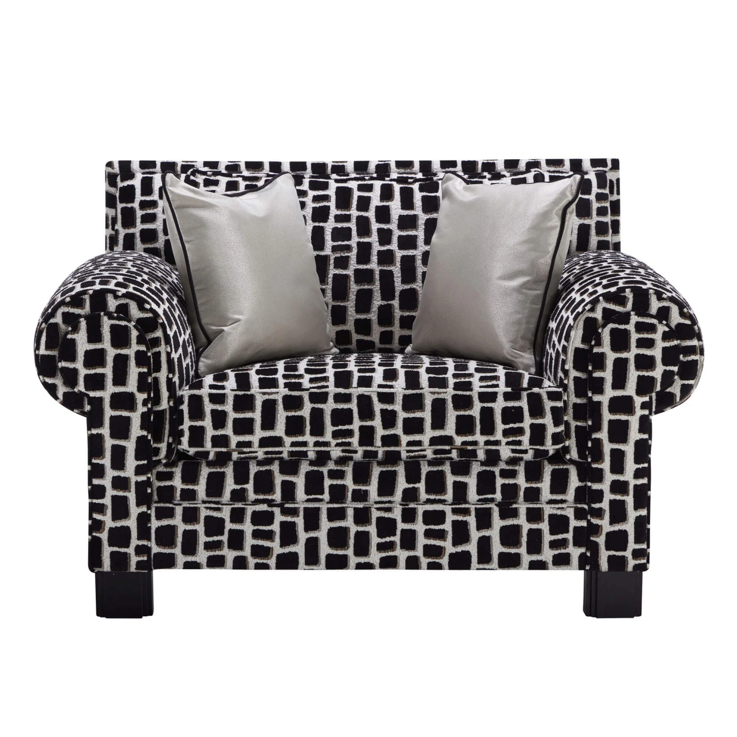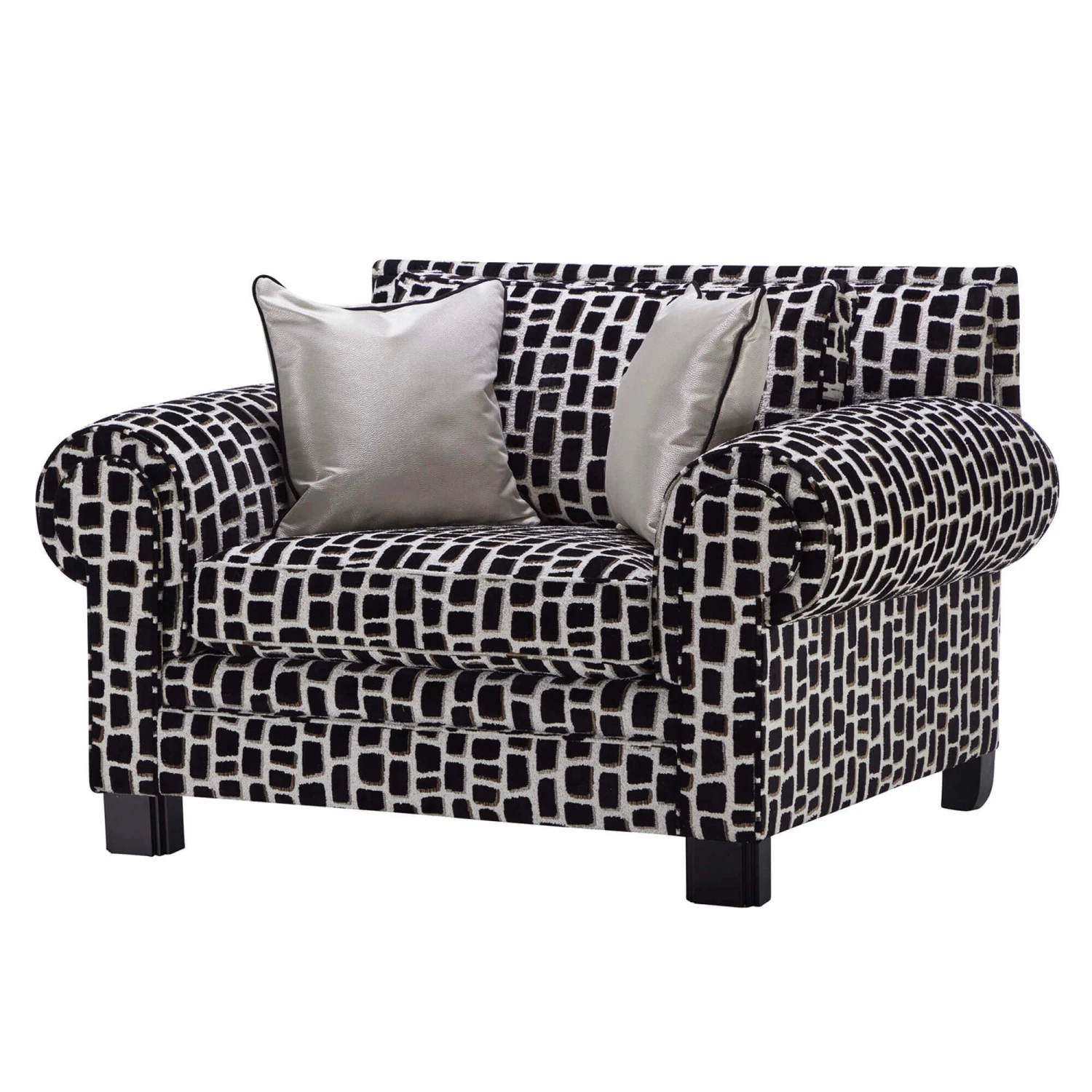 The Coco Maya Ebony Fabric Reading Chair from Duresta symbolizes modernity and luxury with its Parisian Art Deco design. Upholstered in a Maya ebony fabric, the Coco reading chair features a stylish high back, a deep-seated cushion, scroll arms, self piping and removable sturdy ebony wooden legs, creating a wonderfully stunning piece that has grandiose proportions paired beautifully with classic British styling.