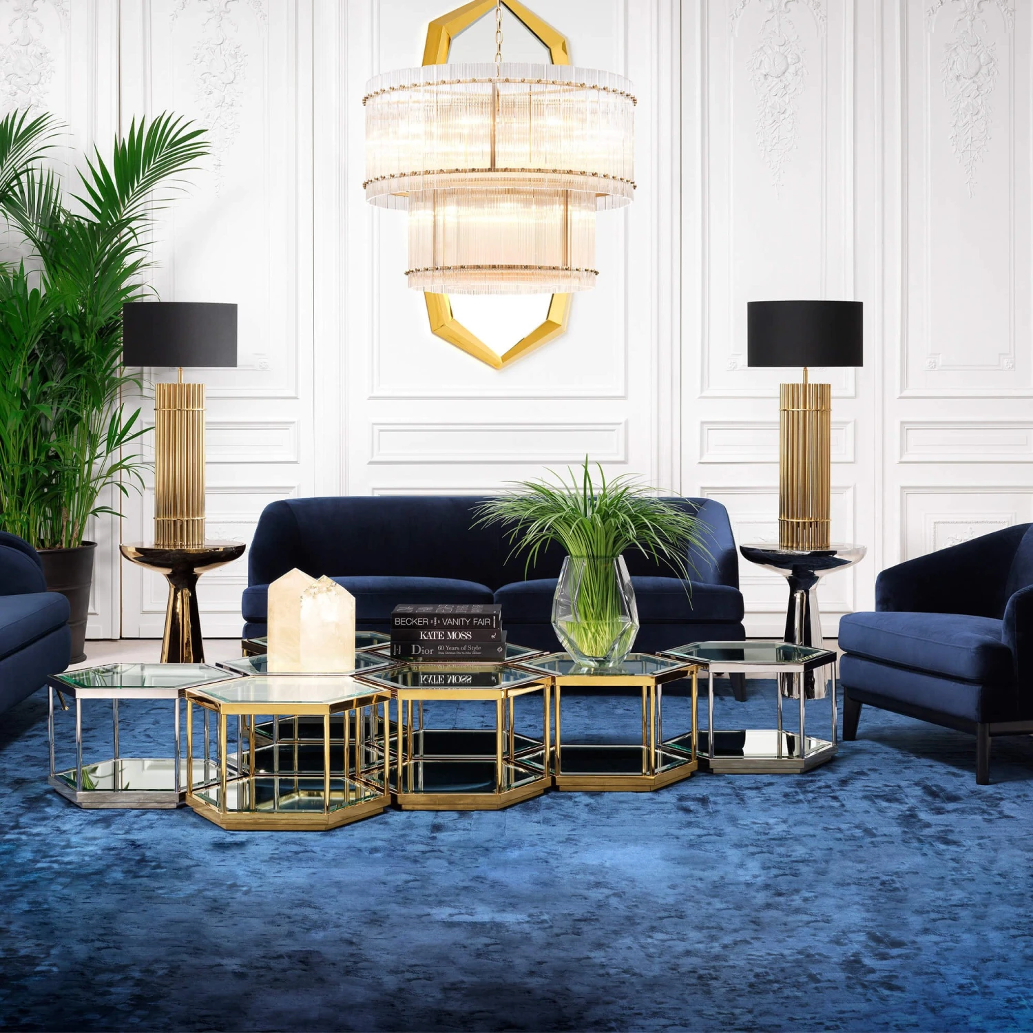 Make a bold statement with the luxurious Baldwin Sapphire Rug by Eichholtz. Striking in both scale and design, this generously sized 300cm x 400cm rug is perfect for anchoring large open plan spaces or creating a dramatic focal point in your interior. Crafted in a deep, rich sapphire blue, the rug boasts a high shine finish that beautifully reflects light, adding depth and dimension to your room. The geometric, labyrinth style pattern offers a nod to Art Deco design, blending classic elegance with a modern edge.
