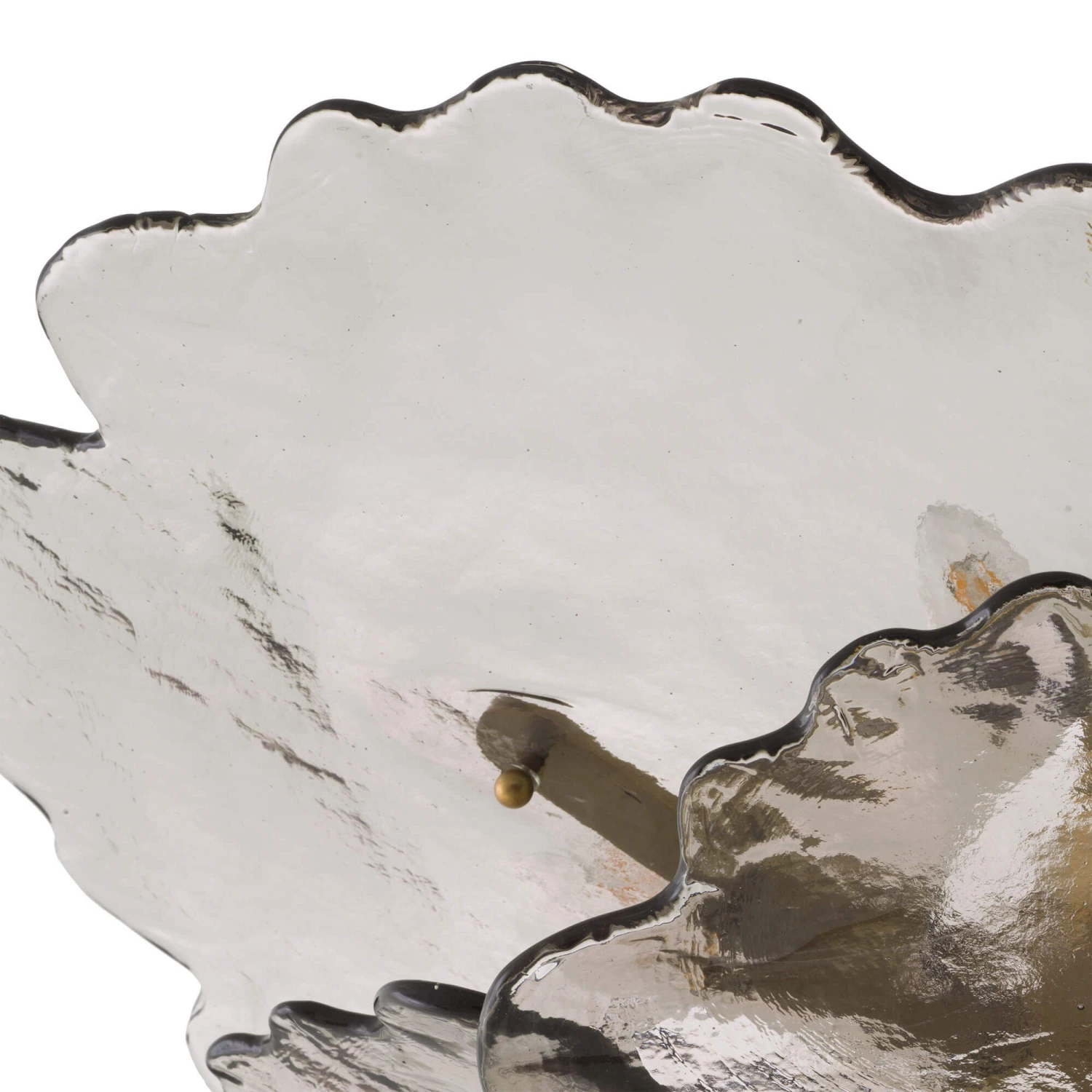 The Florina Antique Brass & Smoked Glass 9 Light Chandelier by Eichholtz portrays where artisan craftsmanship meets luxury lighting. Illuminable by nine E14 bulbs, this exquisite chandelier features a shade constructed from multiple tiers of handmade smoke glasses reminiscent of petals, with an antique brass finish base, able to create a wonderful yet cosy ambience. Beautifully unique, this stunning chandelier will instantly elevate your living space with its captivating and luxurious design.