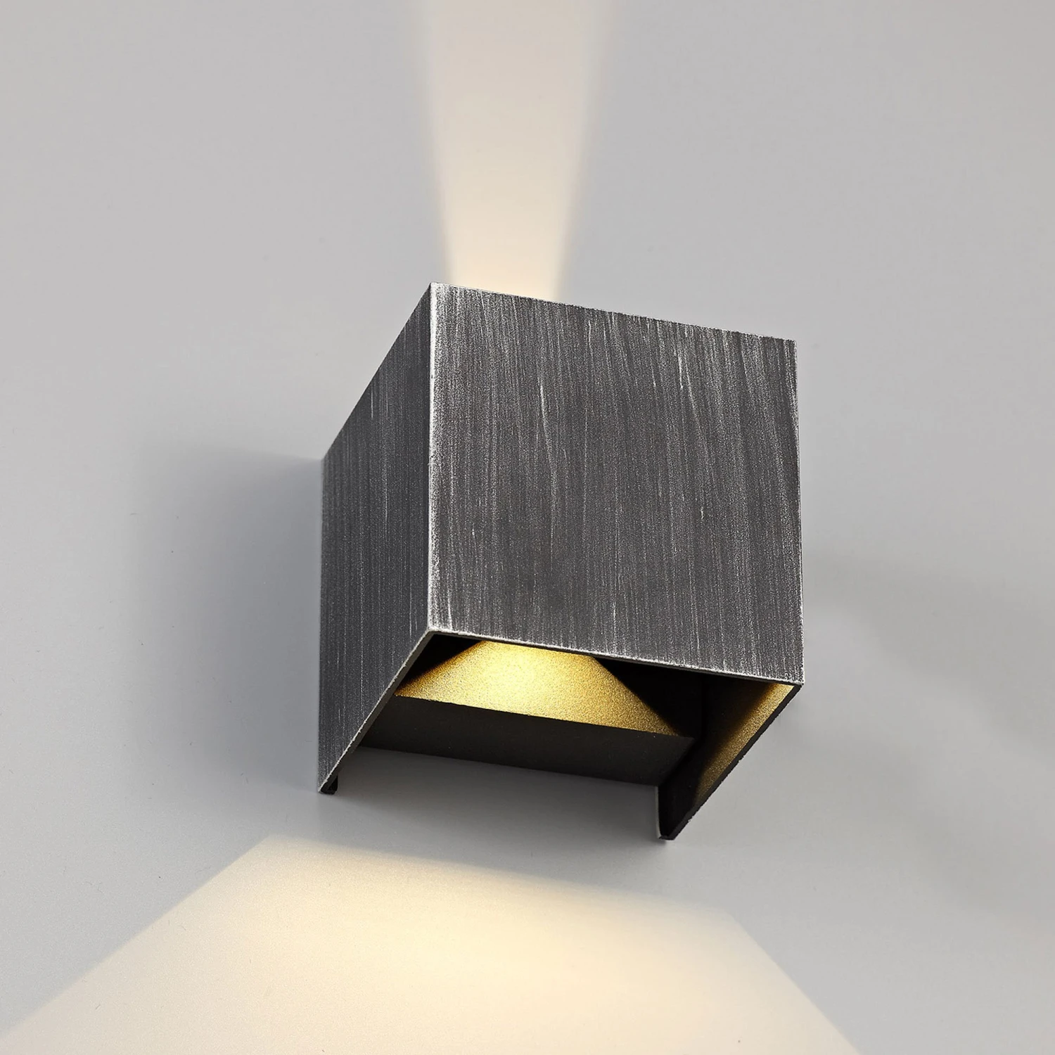 The Escar Black & Silver Outdoor Wall Light features a worn brushed effect on die-case aluminium, to add a rustic charm to your outdoor space. The up and downward directionality of the light from the industrial inspired frame provides subtle illumination, perfect for any outdoor area.