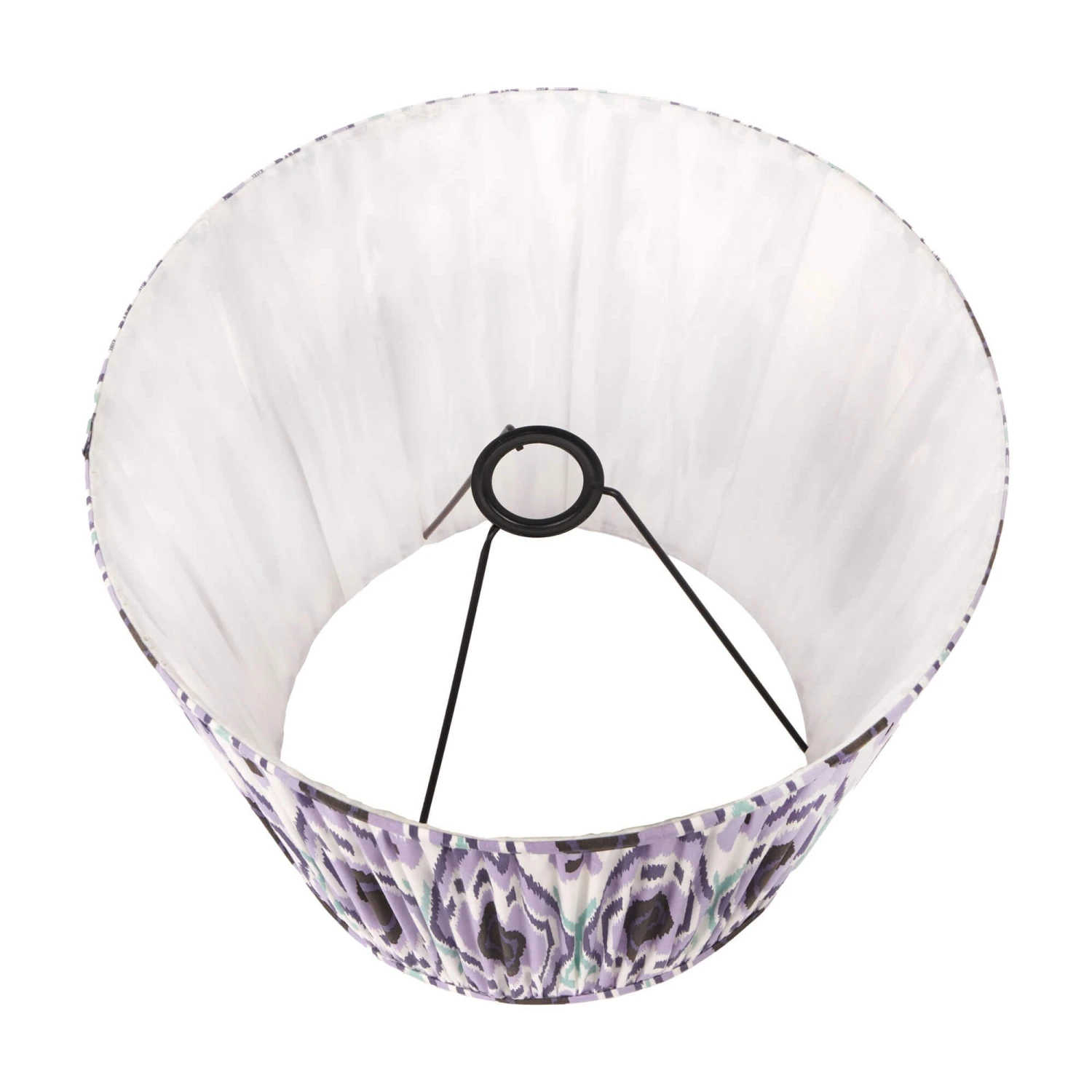 Add beautiful pattern and texture to your space with this Ezra Lilac Patterned 45cm Shade. Made from cotton, this gathered and tapered lampshade is adorned with a stunning Ikat pattern in purple and lilac tones, creating a eye-catching and captivating look. Available in various colours and sizes, this striking lampshade is perfect for adding a vibrant yet bold pop of colour to any interior.