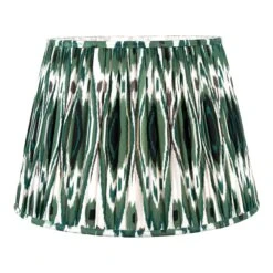 Add beautiful pattern and texture to your space with this Ezra Racing Green Patterned 35cm Shade. Made from cotton, this gathered and tapered lampshade is adorned with a stunning Ikat pattern in rich green tones, creating a eye-catching and captivating look. Available in various colours and sizes, this striking lampshade is perfect for adding a vibrant yet bold pop of colour to any interior.