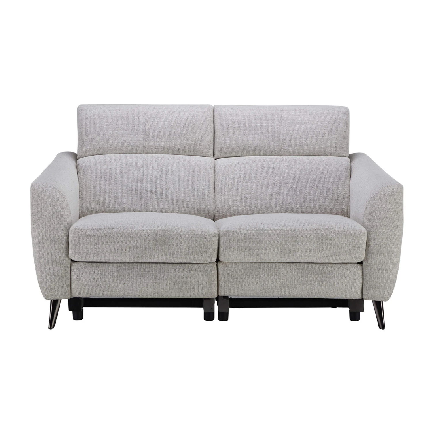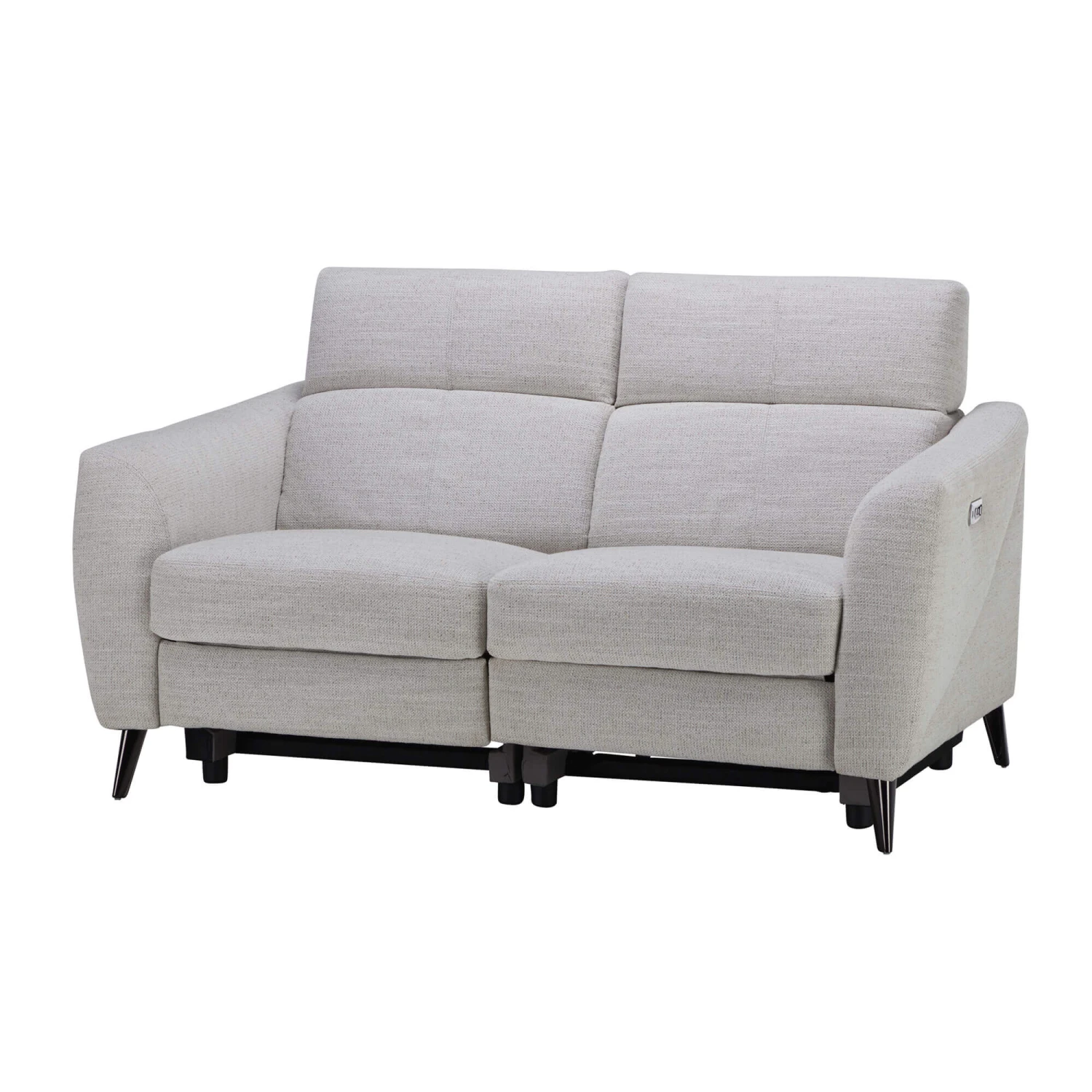 Experience relaxation and ultimate comfort with the Fiastra White Fabric Power Recliner Loveseat. Upholstered in an inviting white fabric, the Fiastra features soft curves, wonderfully padded cushions and black chrome metal legs, creating a modern yet welcoming look.