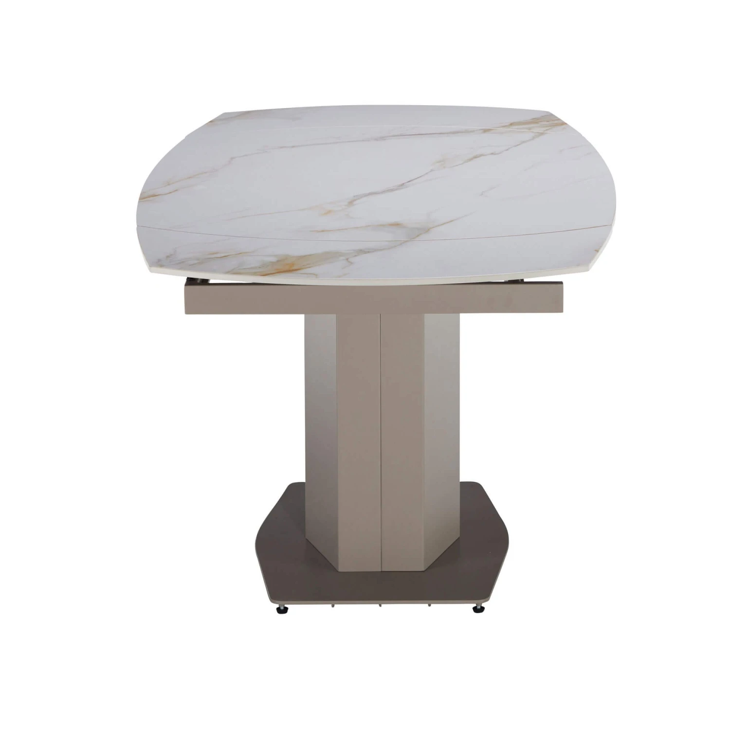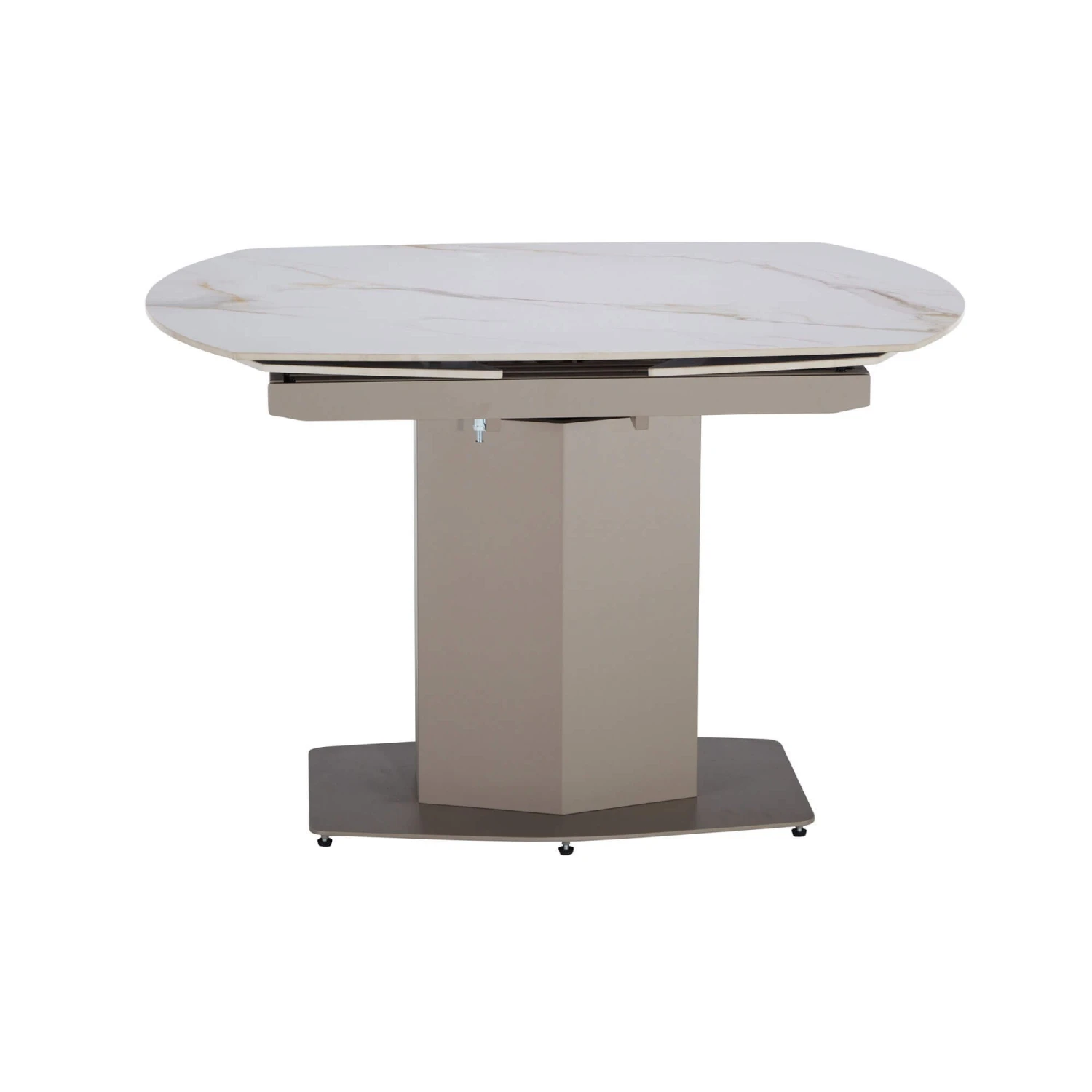 Elevate your dining experience with the Fidenza 200cm Ceramic Extending Dining Table, a stunning centrepiece that seamlessly blends contemporary design with timeless elegance. This rectangular table features a luxurious ceramic top with a glass coating, showcasing a captivating marble effect. The soft rounded edges create an inviting oval shape at the ends, perfect for entertaining guests.