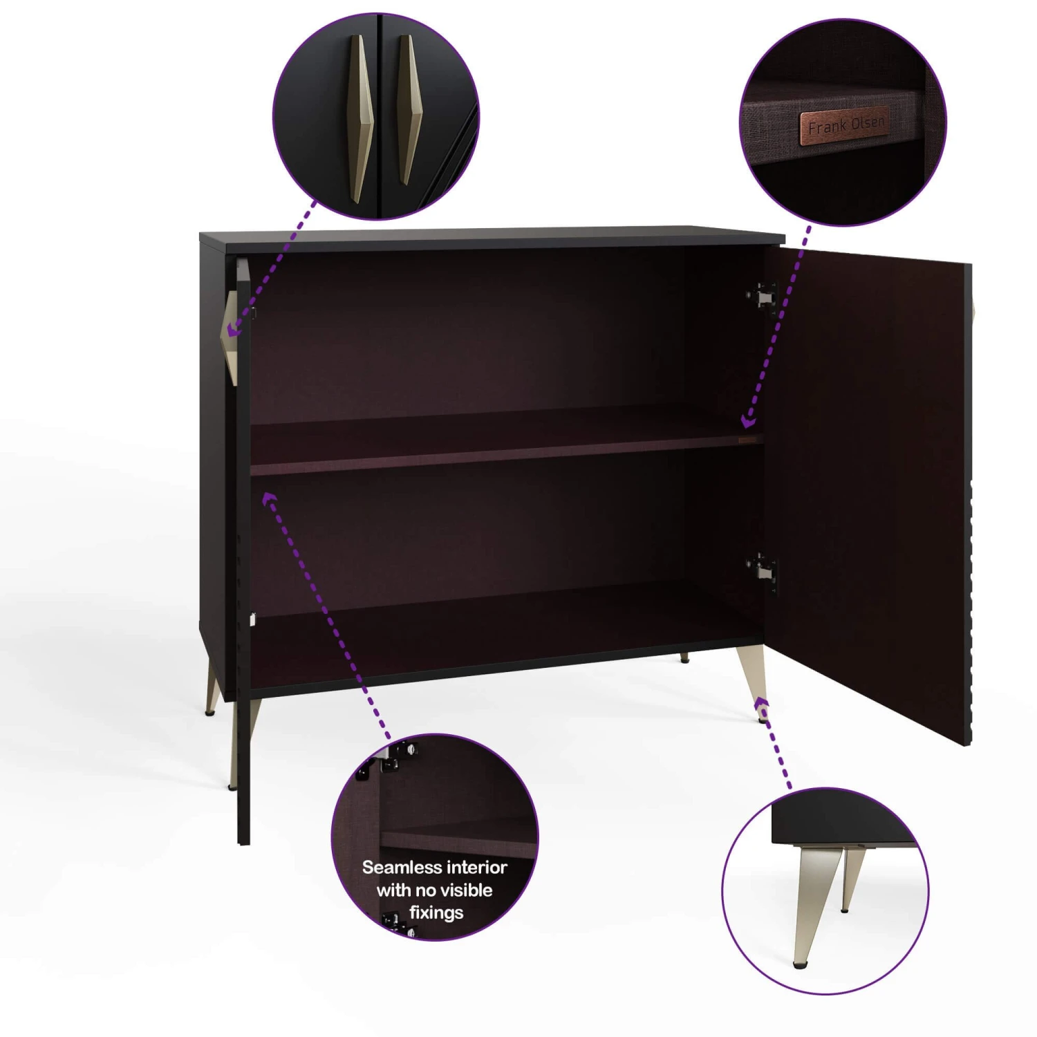 Control the integrated LED lights through the Frank Olsen App or voice commands via your SMART speaker, that also controls the LED rear mood lighting with a full colour spectrum. Designed with a discreet wireless phone charging point for convenience.