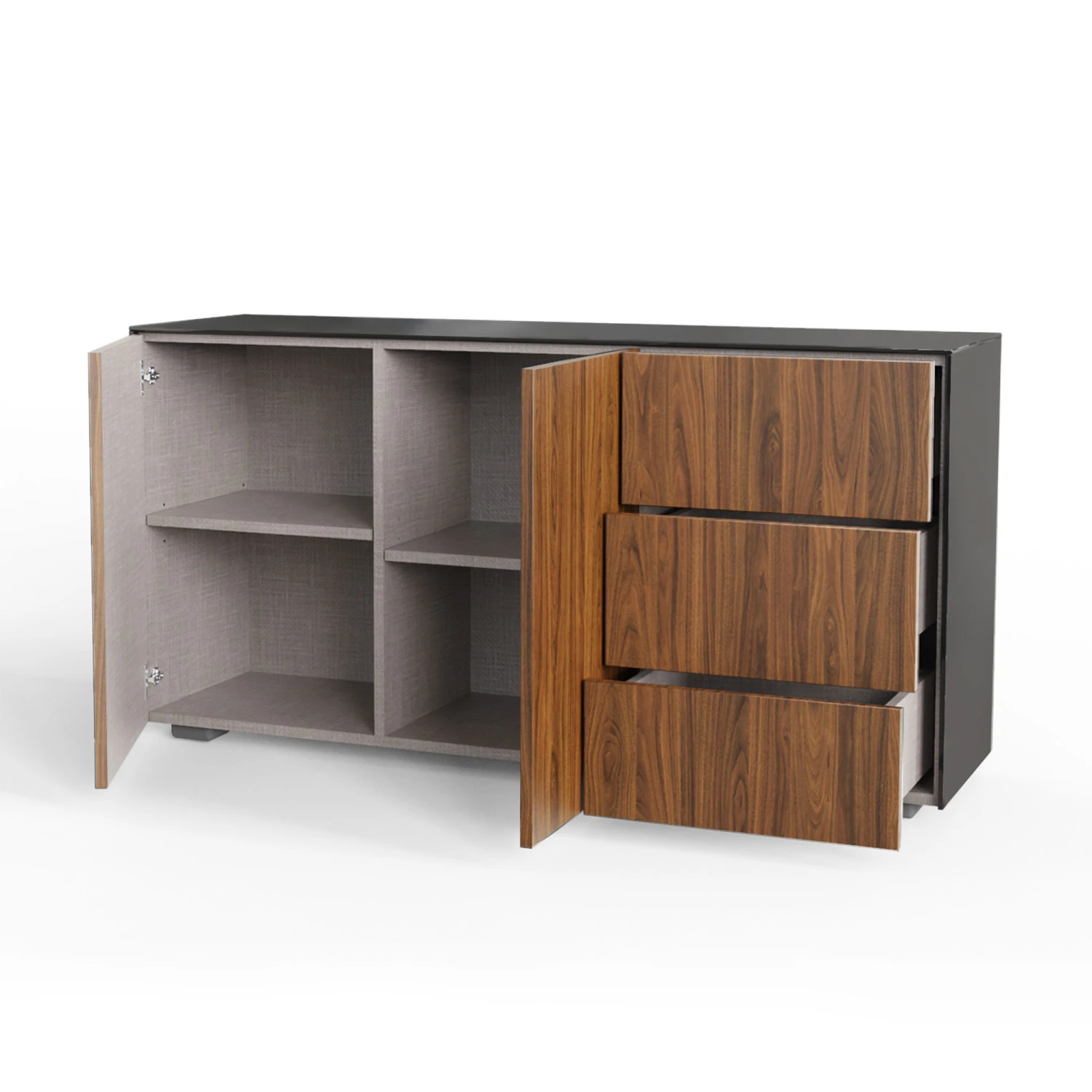 Created with style and functionality in mind, the Intelligent Sideboard boasts a scratch resistant, high gloss grey exterior, walnut effect doors, glass top and a textured grey interior with adjustable internal shelves. The combination of an ultra-chic design and superb technology makes this a must-have piece of furniture for any modern home.