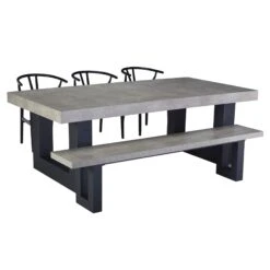Ingrid Concrete-Effect 220cm Dining Table With Bench & 3 Larvik Black Wishbone Chairs