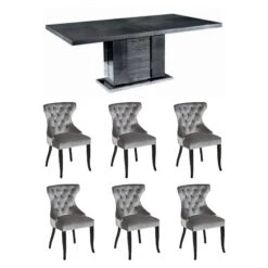 Monza Koto Grey High Gloss Large 196cm Extending Dining Table & 6 Gaudi Silver Velvet Chairs