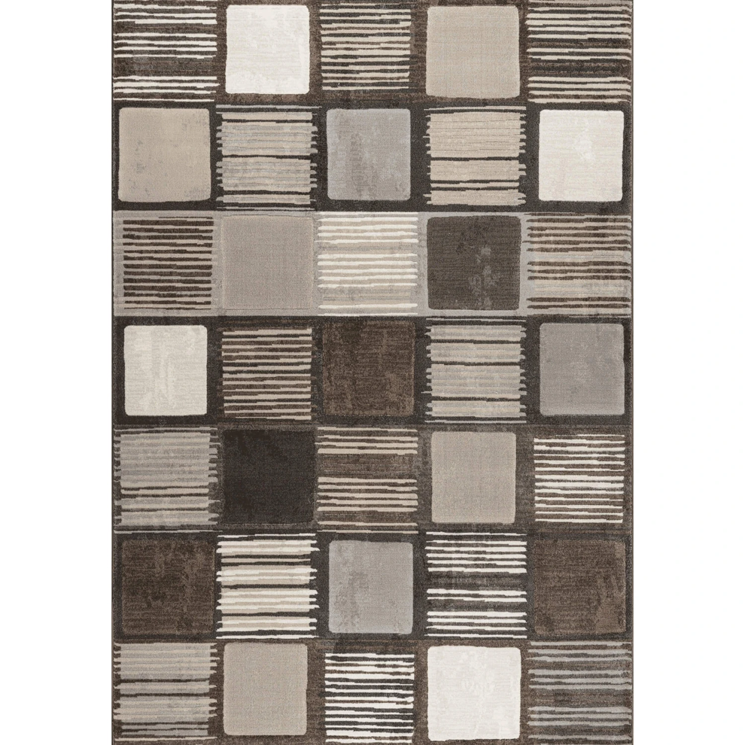 Add some warmth and texture to your home with the Galleria Squares 133cm x 195cm Rug in a versatile Brown & Beige colour palette. Featuring a modern geometric design of alternating squares with subtle linear detailing, this rug effortlessly blends neutral tones of taupe, ivory, mocha and grey to create a contemporary look that complements a wide range of interiors.