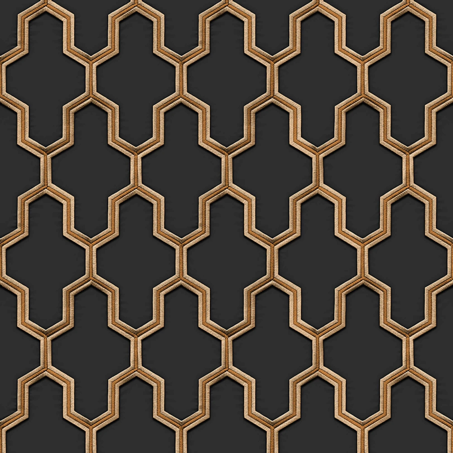 The Geometric Silk Black & Gold Wallpaper from Arthouse is contemporary and sophisticated in look and design. Featuring an all-over embroidered geometric pattern on a heavyweight vinyl, this magnificent wallpaper has a stunningly unique and textured touch that will leave you enthralled. The beautiful black silk style base accentuated by stylish gold embroidery provides a dramatic and luxurious statement in any room, making it perfect for creating a truly mesmerising wallcovering able to become a joy to the senses in any modern home interior.
