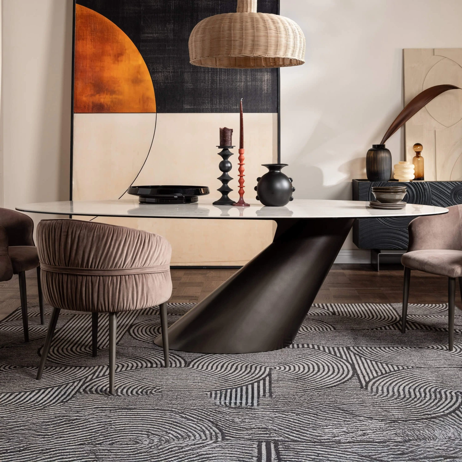 Perfect for those who appreciate the finer details, this dining table seamlessly blends sleek finishes with natural textures, offering both style and substance to any modern interior. The harmonious combination of ceramic and metal brings a cool sophistication, while the warm undertones and tactile qualities ensure the space remains inviting and grounded. Whether placed in a vibrant, layered living room or a serene, minimalist setting, this luxury ceramic coffee table is a welcome addition that celebrates contemporary living at its finest.