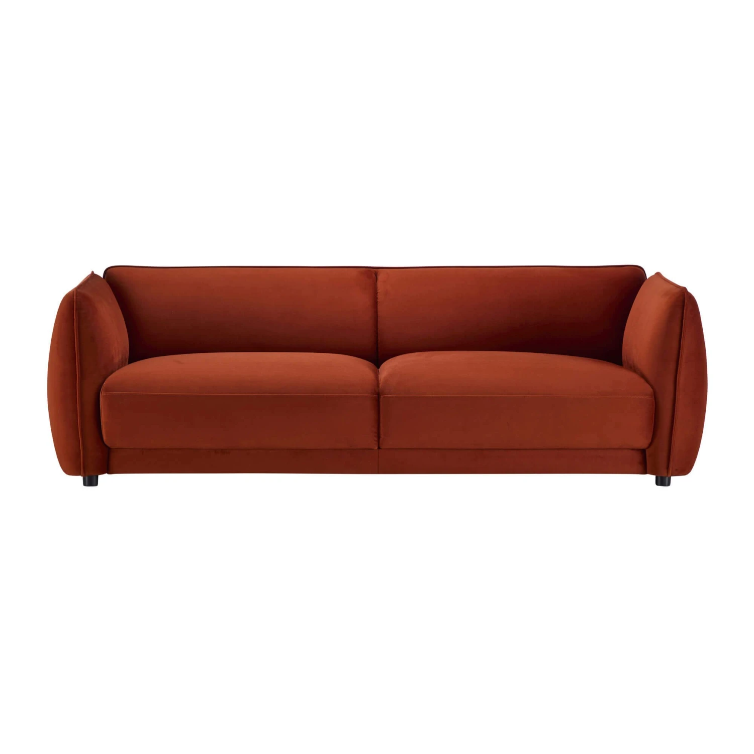 The Thorne Rust Orange Fabric 3 Seater Sofa from Glass House adds charming, mid century modern accents into your home. Inspired by the heart of style, the Glass House collection is a collective blend of mid-century style inspired by 20th-century modernism, allowing you to experience luxurious comfort and exquisite detailing in every design.