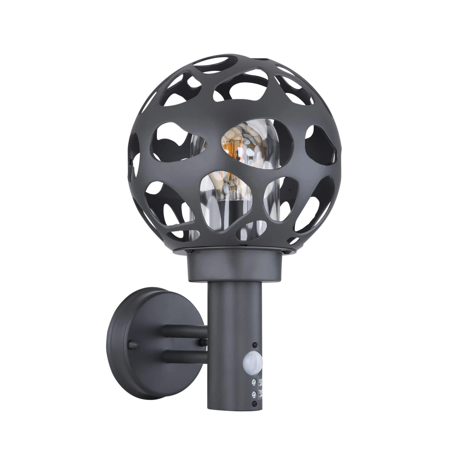 Globe Anthracite Punched Motion Sensor LED Outdoor Wall Lamp