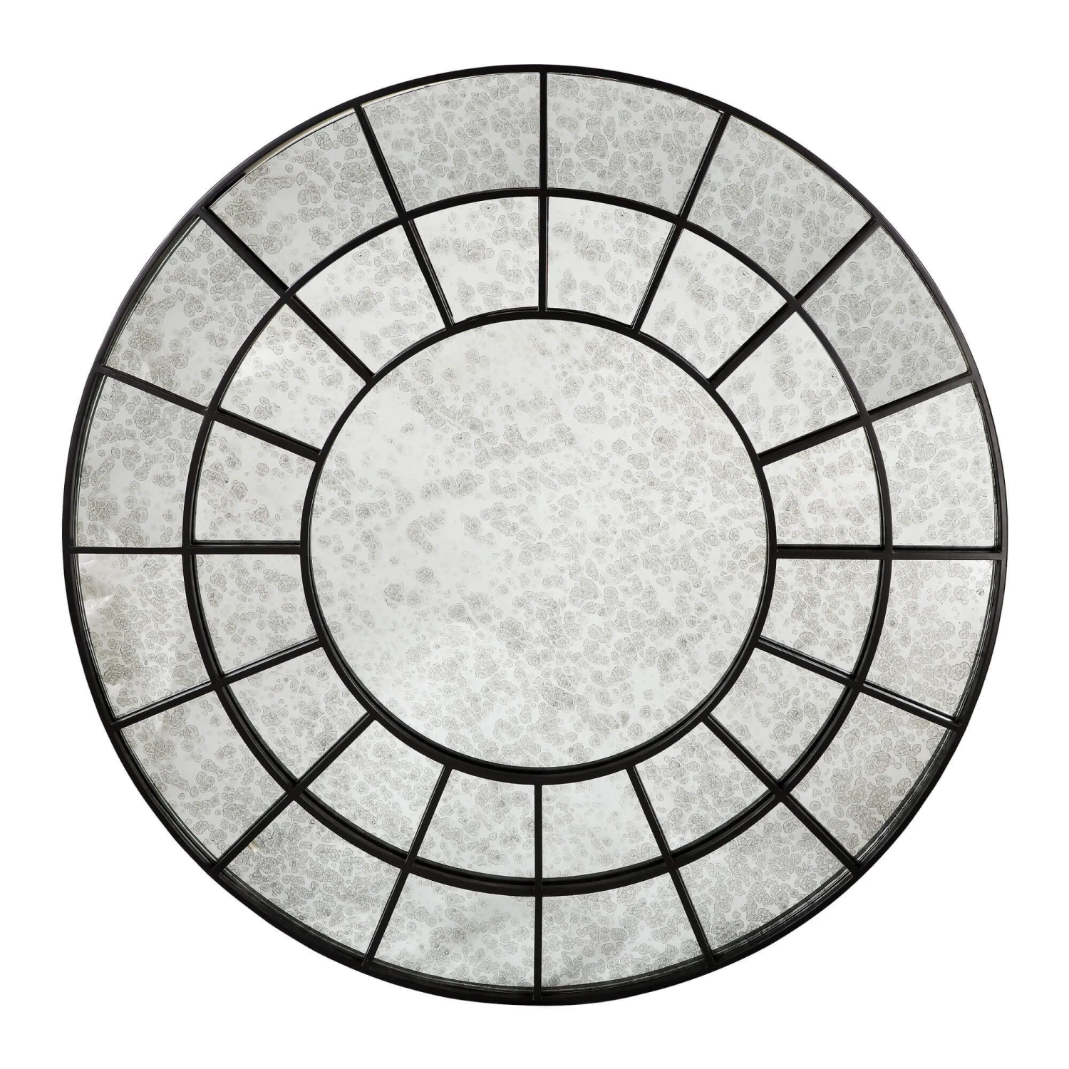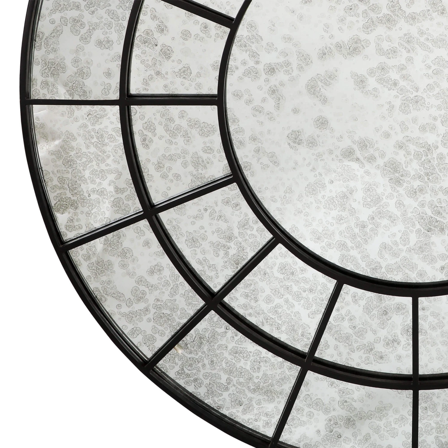 This circular faded glass mirror is perfect for making a statement in your home with its large size and luxurious design. Complement your living room or dining room, or in your entrance hall to make a stunning focal point. The antique style gunmetal finish gives a unique aged charm and character.