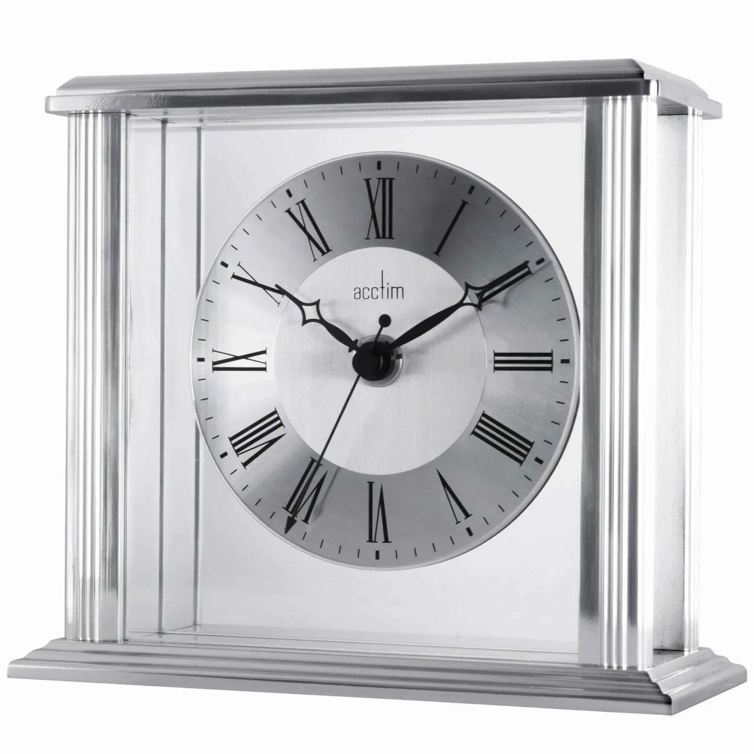 Perfect for a shelf or Mantel, the Hamilton Silver Mantel Clock will add a classy, contemporary feel to your room. The silver clock with the black Roman Numerals works together perfectly and will work well with most colour palettes.