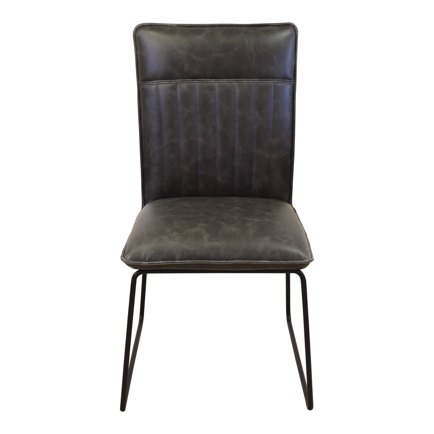 A must-have for the host with the most, the Clarence Grey Faux Leather Dining Chair epitomises contemporary design and is perfect for entertaining. Each chair is meticulously created from grey faux leather fabric, which has a very similar look to real leather, so when you touch the chair, you feel the instant luxury with a textured finish. This dining chair perfectly complements many dining tables with its dusky, charcoal grey finish and matte black, powder-coated metal legs.