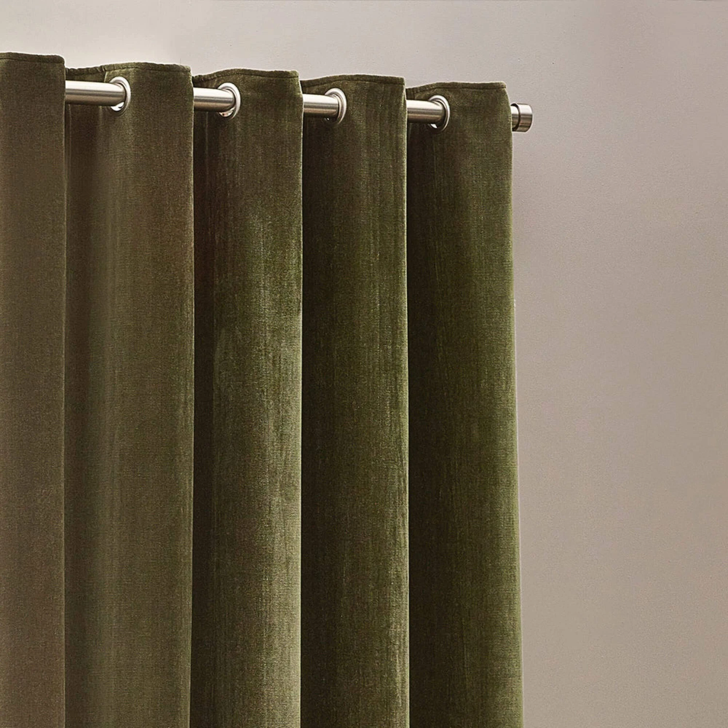 Heavy Chenille Olive Room Darkening Eyelet 90″ X 72″ Curtains